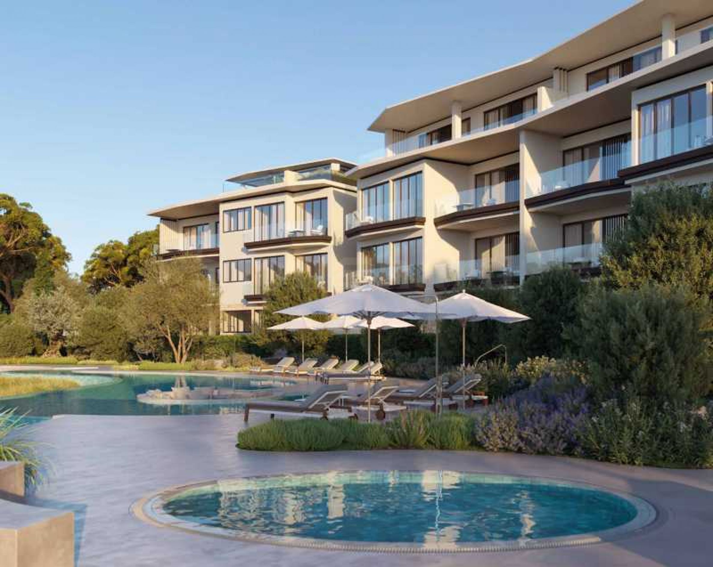 Die Architektur der Villen und Apartments stammt von HKS Architects, einem weltbekannten Architekturbüro, das Minimalismus und natürliche Ästhetik vereint. Das Konzept von „Barfuß-Luxus“ verbindet Innen- und Außenraum und vermittelt ein Gefühl von Freiheit, Komfort und natürlichem Licht.