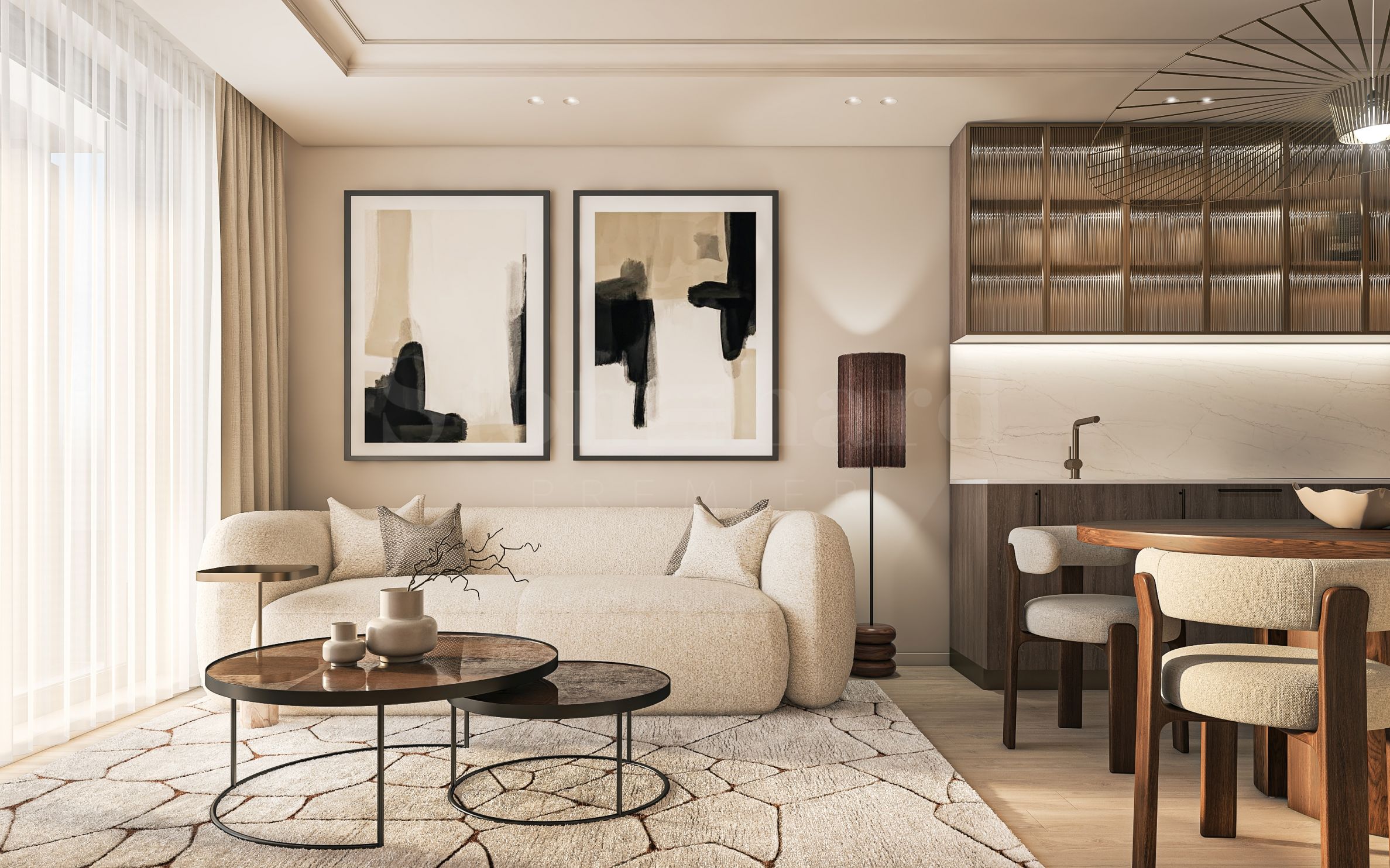 Die Gemeinschaftsbereiche werden nach einem individuellen Gestaltungskonzept entworfen, und luxuriöse Aufzüge ermöglichen einen schnellen und bequemen Transfer zwischen den Etagen. Das Gebäude verfügt außerdem über zwei Tiefgaragenebenen für die Fahrzeuge der Bewohner.