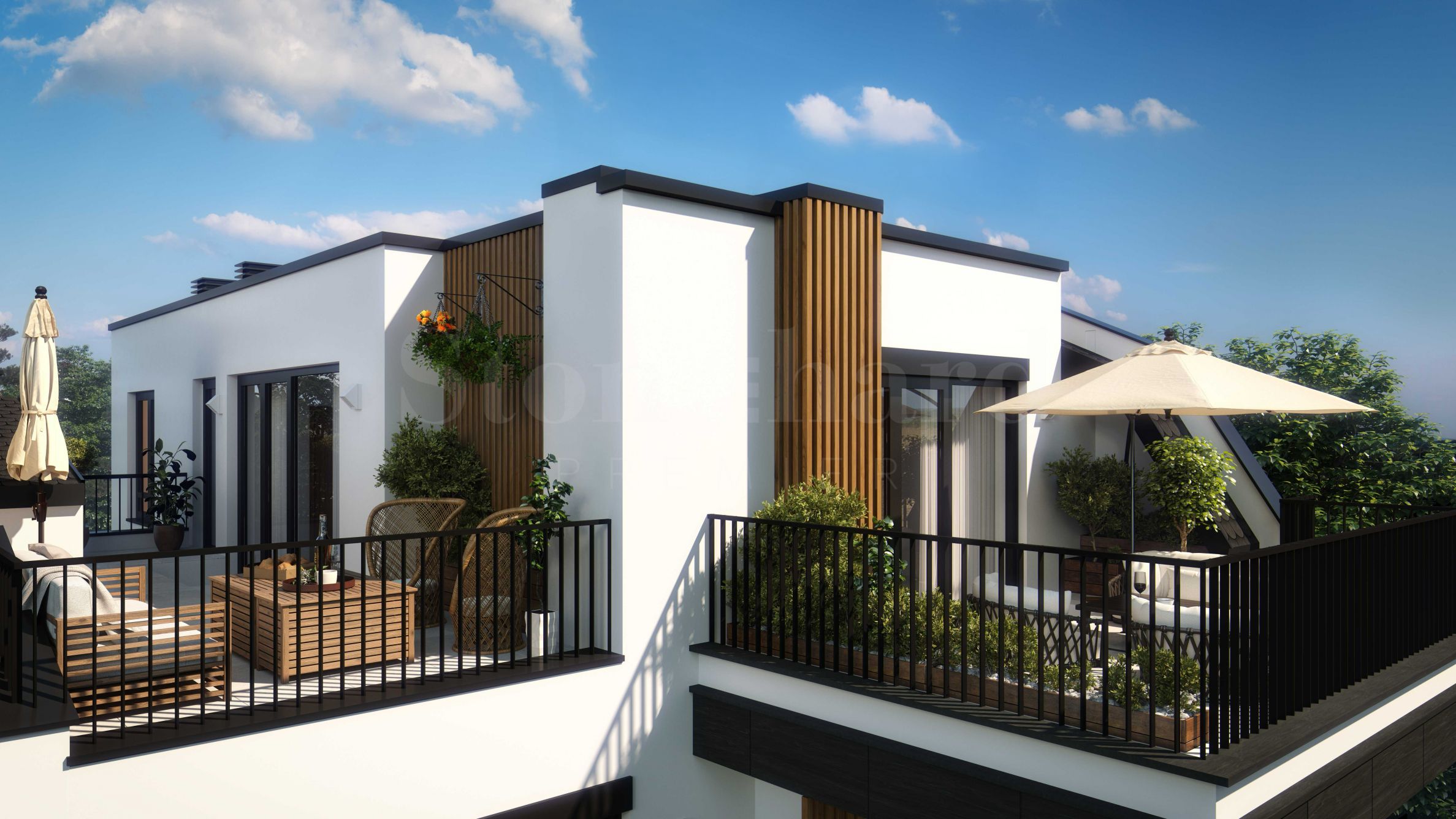 Die Wohnungen verfügen über hochwertige, gepanzerte Eingangstüren und automatische Garagensysteme ermöglichen eine schnelle und sichere Zufahrt mit dem Auto. Intelligente LED-Beleuchtung sorgt rund um die Uhr für optimale Sicht und Komfort.