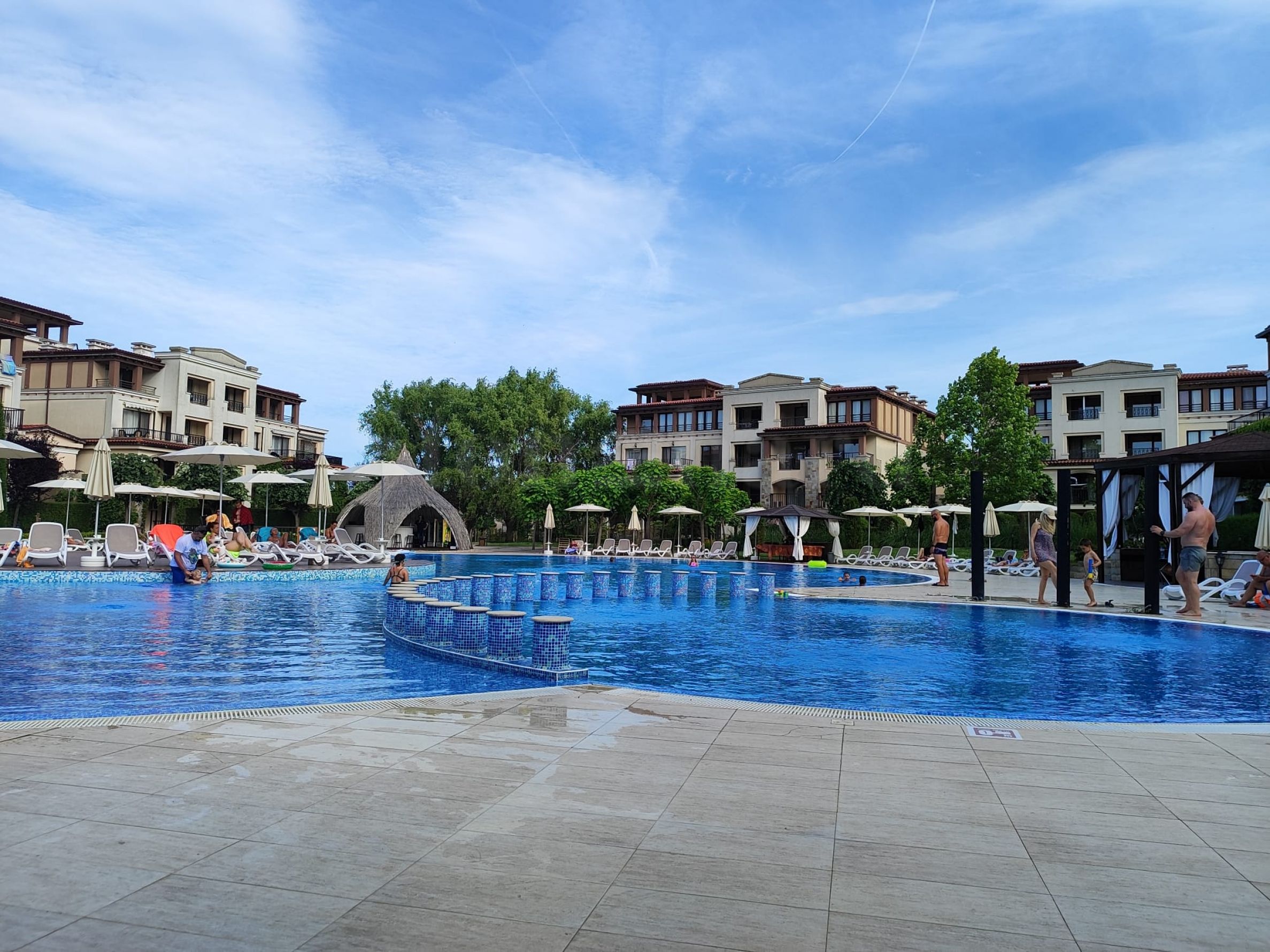 • luxuriöse Schwimmbäder, Rezeption und Sicherheitspersonal;