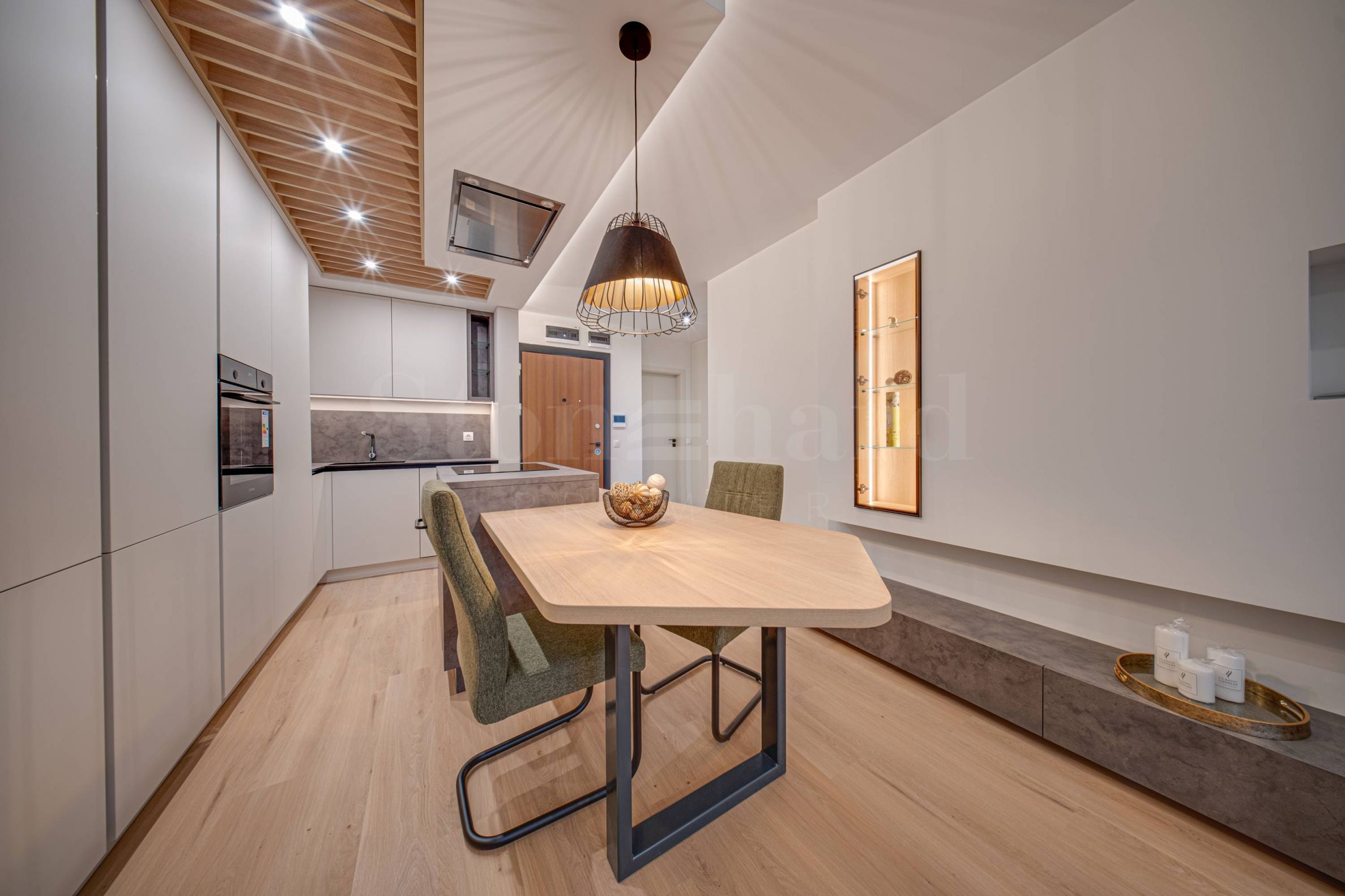 • Foyers und Flure – Boden – Granitfliesen, Wände – Paneele und Verkleidungen gemäß Innendesign, abgehängte Decken mit Gipskartonplatten, gestrichen mit Latex auf Gipsputz, mit Designerbeleuchtung gemäß Projekt.