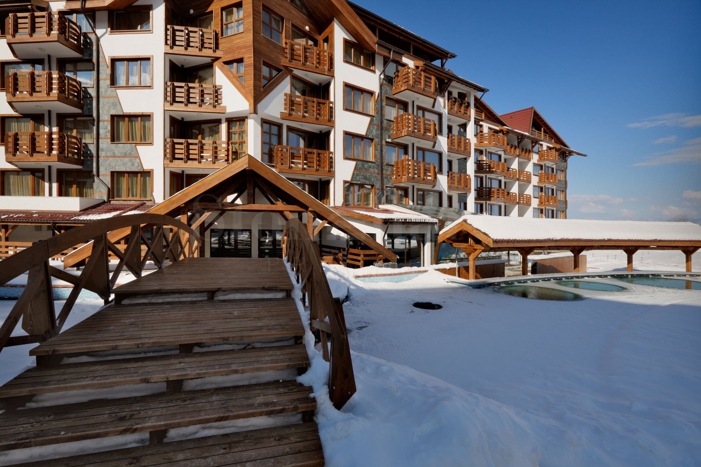 Die Anlage ist ein abgeschlossenes Wohngebiet mit funktionalen Apartments und bietet neben erstklassigen Freizeit- und Unterhaltungsmöglichkeiten auch hervorragende Annehmlichkeiten. Sie befindet sich im neuen, modernen Stadtteil Bansko, nur etwa 400 m von der Gondelbahn und in unmittelbarer Nähe des Einkaufszentrums Mall of Bansko entfernt.