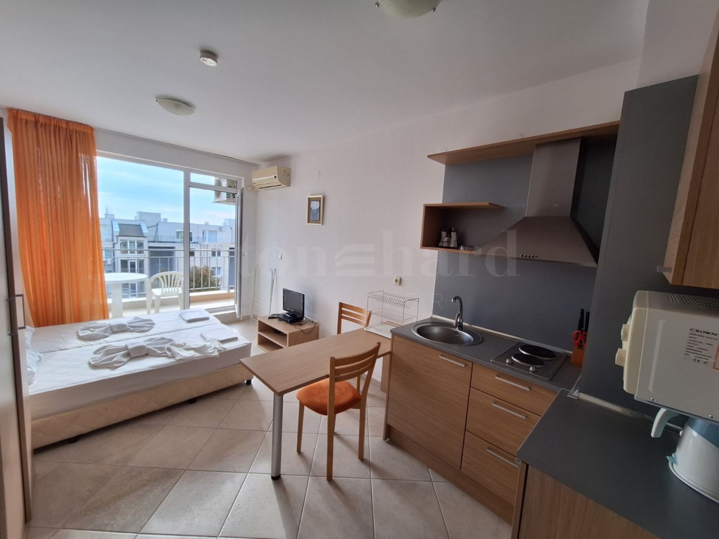 Kompaktes Studio in einem Mini-Resort mit Swimmingpools in Kosharitsa, in der Nähe von Sonnenstrand