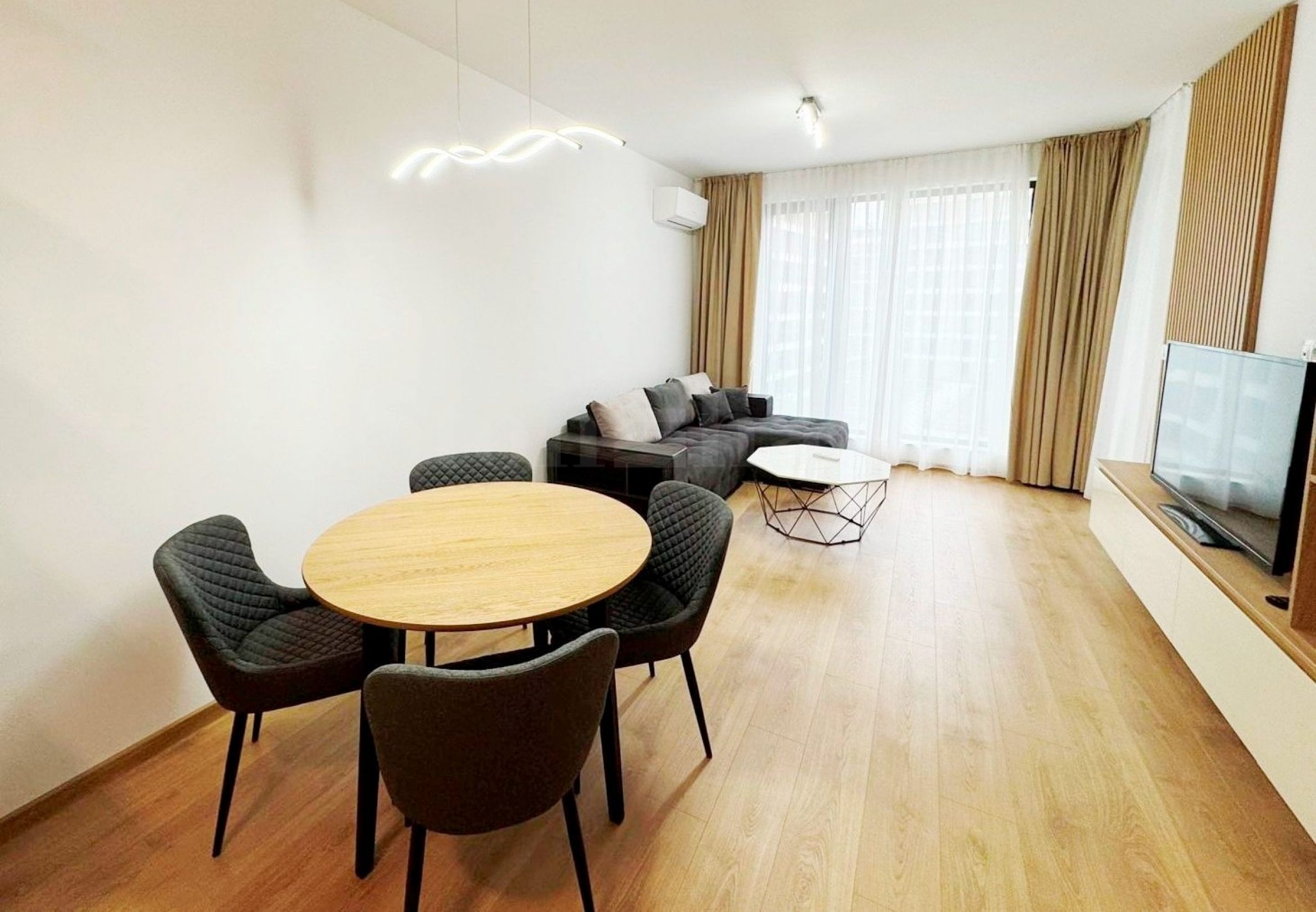 Die Wohnung wird schlüsselfertig mit neuen Möbeln und Elektrogeräten der hohen Energieeffizienzklasse mit Garantie sowie Aluminiumfenstern und -türen „Reynaers CS 77“ verkauft. Heizung und Kühlung erfolgen über Daikin Inverter-Klimaanlagen in jedem Zimmer.