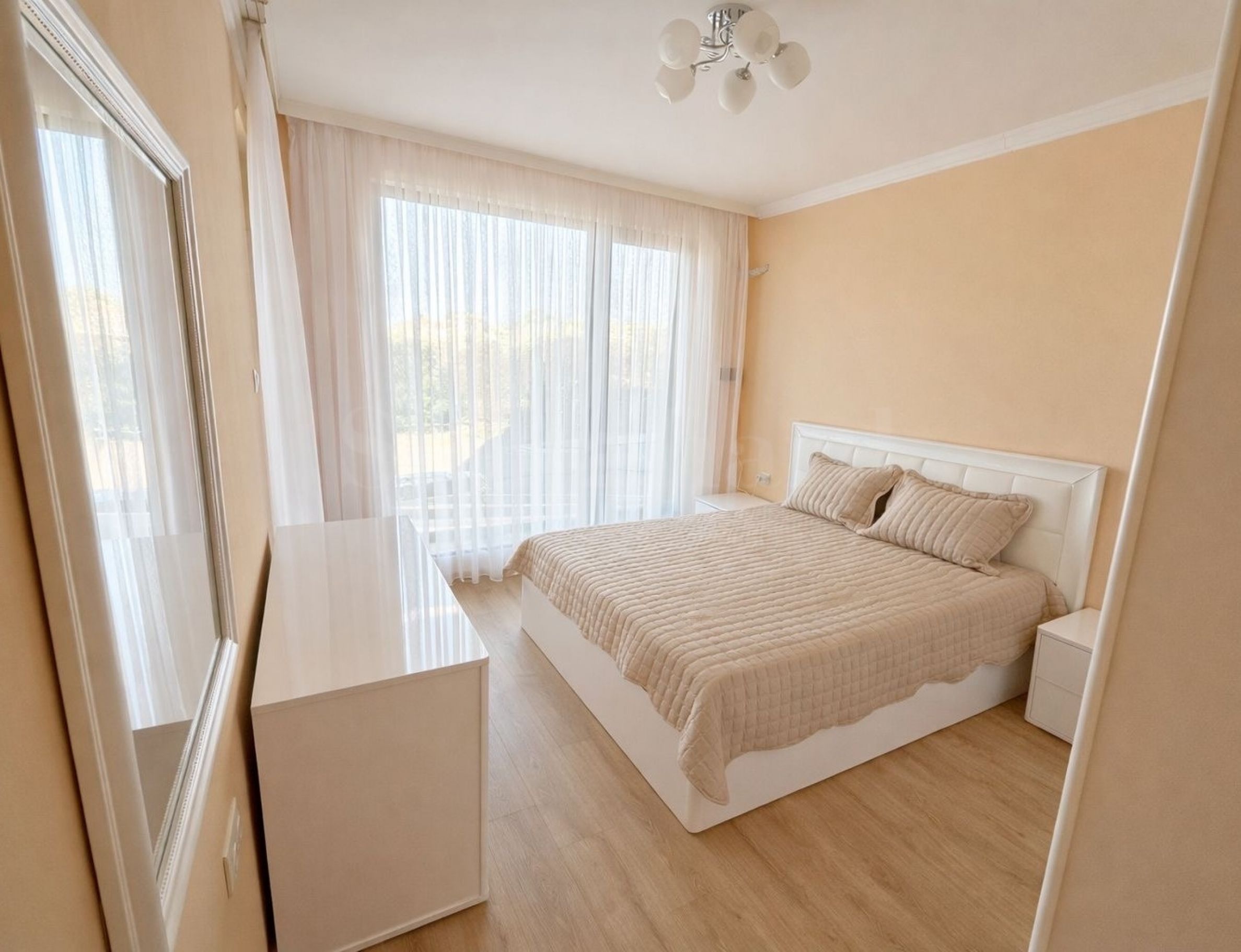 Die Wohnung wird schlüsselfertig mit neuen Möbeln und Elektrogeräten der hohen Energieklasse mit Garantie verkauft – Bosch-Kochfeld, Electrolux-Backofen, LG-Kühlschrank usw. Sie verfügt über Aluminiumfenster „Reynaers CS 77“ mit Dreifachverglasung und ist für Klimaanlagen zur Heizung und Kühlung ausgestattet.