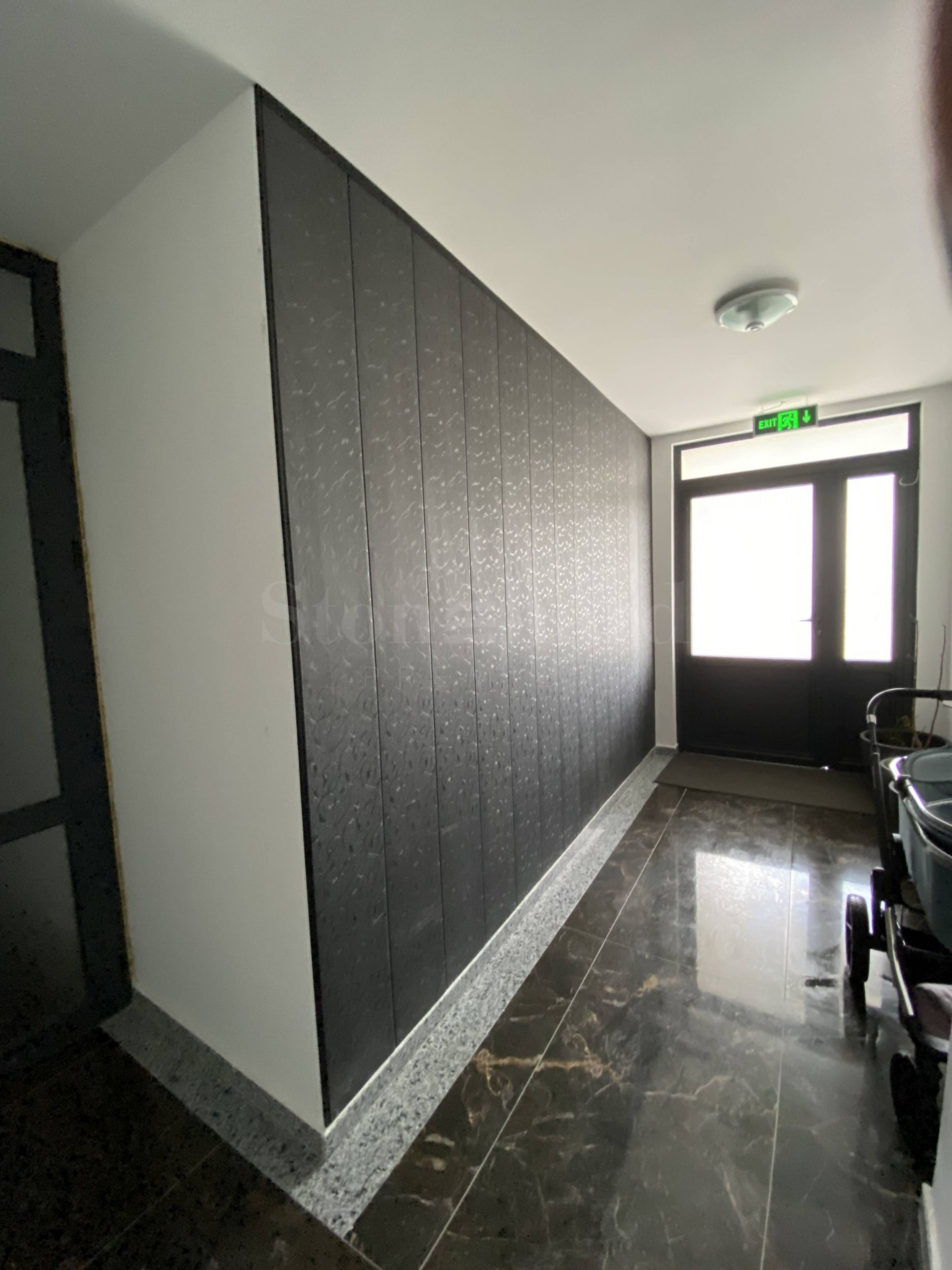 Das Gebäude hat ein modernes, urbanes Erscheinungsbild und ist mit hochwertigen Materialien ausgestattet; die Flure sind mit Granit ausgelegt.