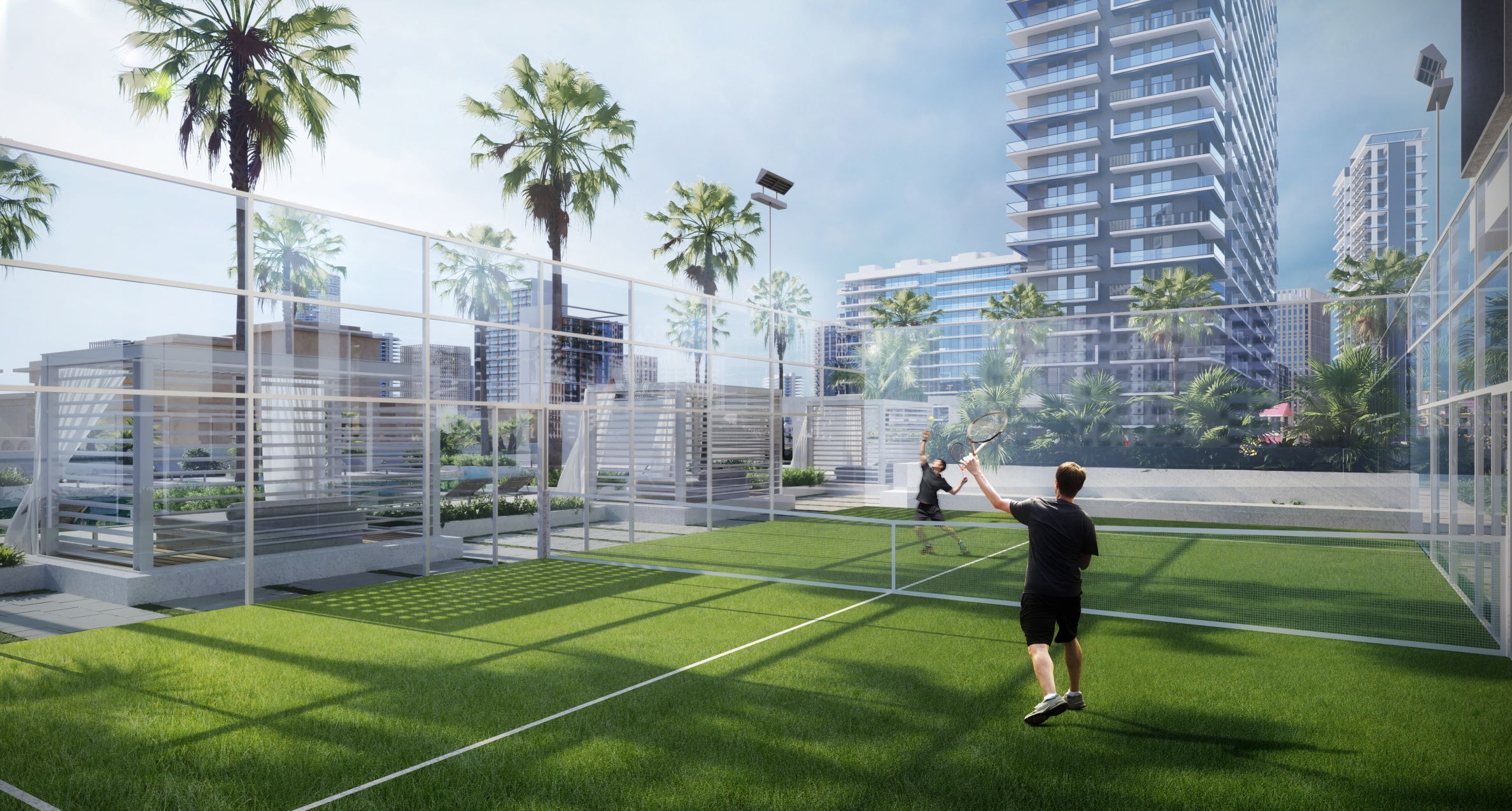 Für einen aktiven und gesunden Lebensstil stehen ein modernes Fitnessstudio, spezielle Yoga-Bereiche, ein Padelplatz und Joggingwege im Freien zur Verfügung, wo die Bewohner Sport treiben und gleichzeitig die grüne Umgebung genießen können.