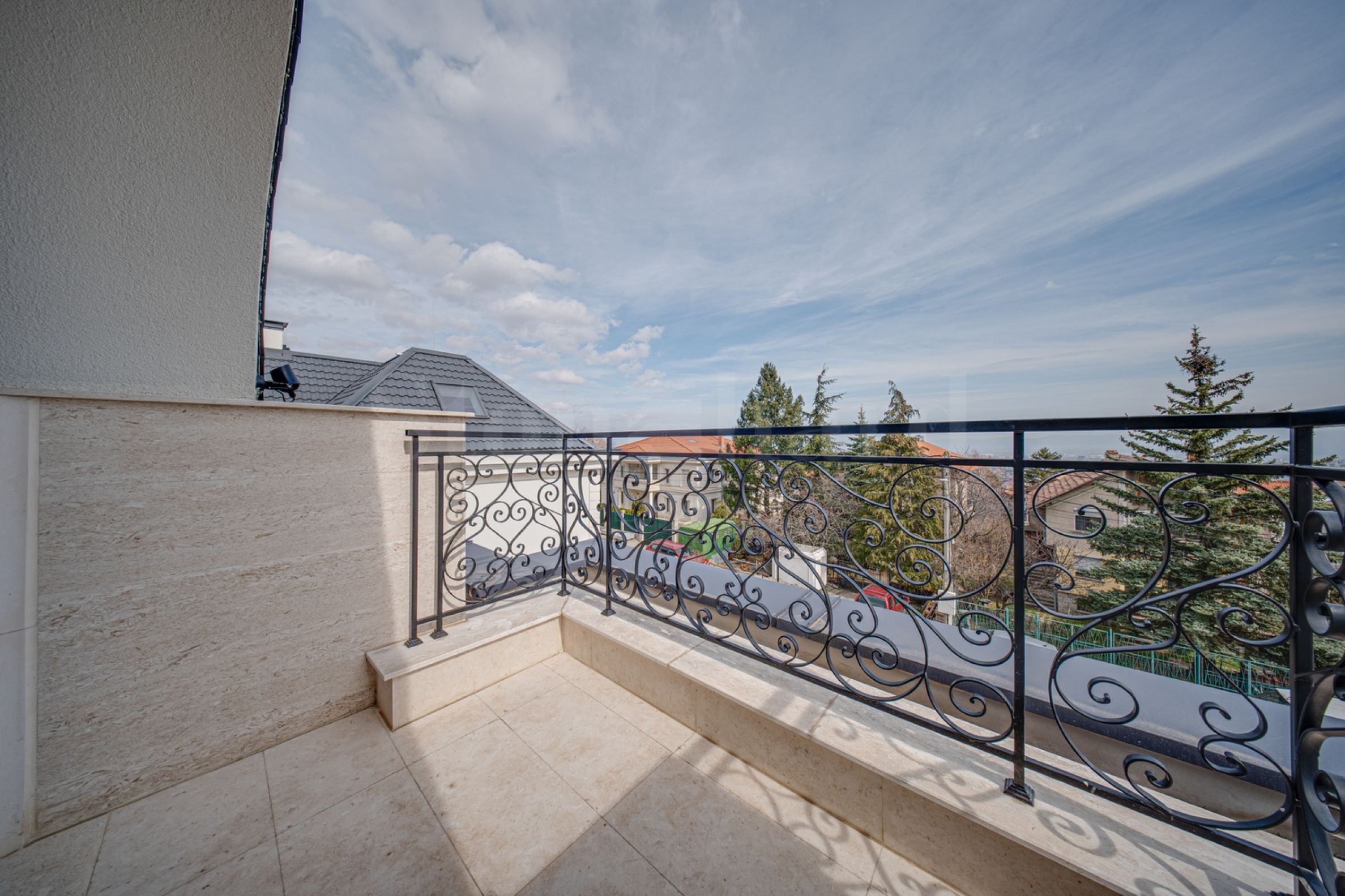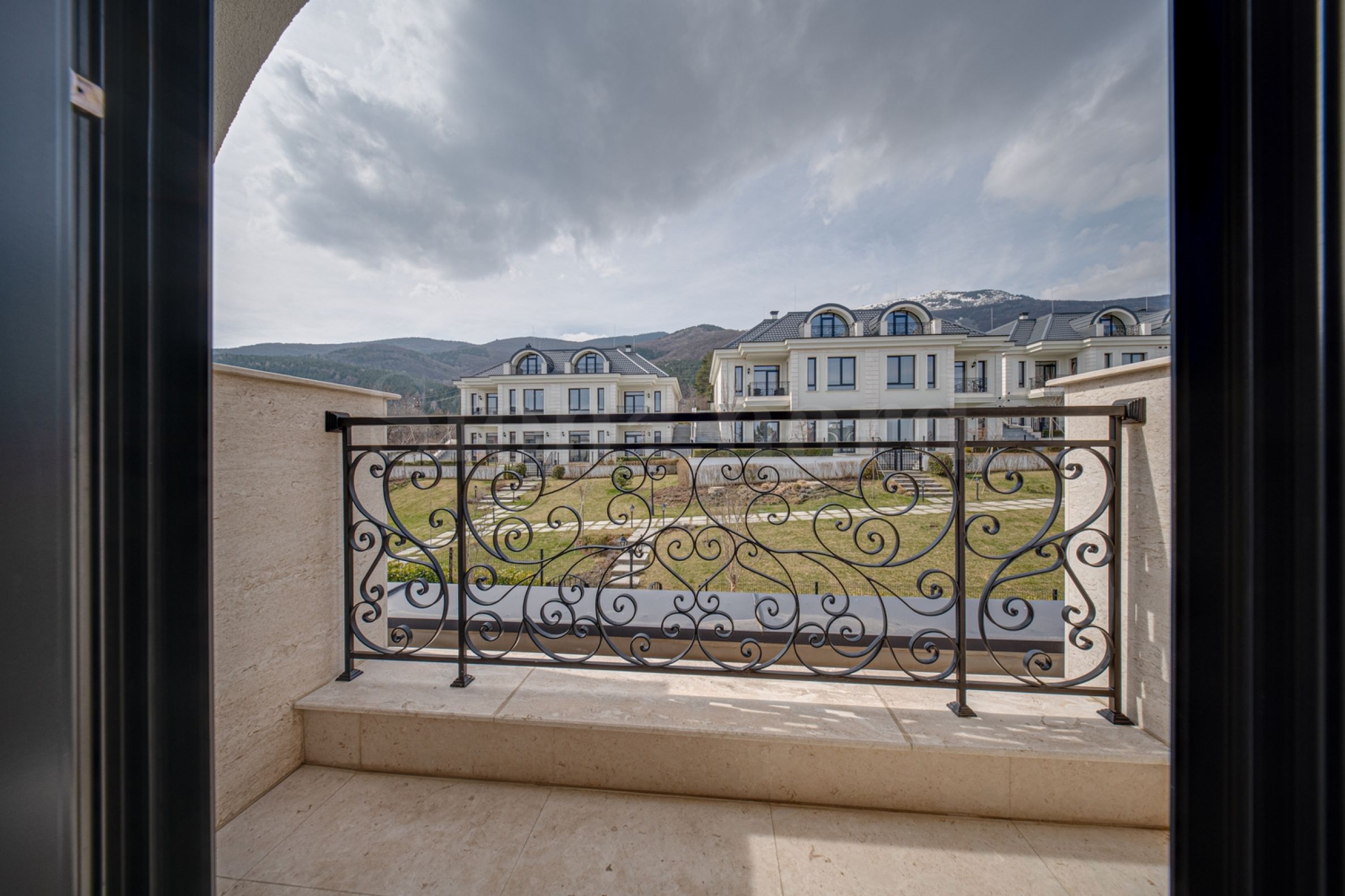 • Ausgang zu einem Innenhof mit Panoramablick auf das Vitosha-Gebirge und die Stadt;