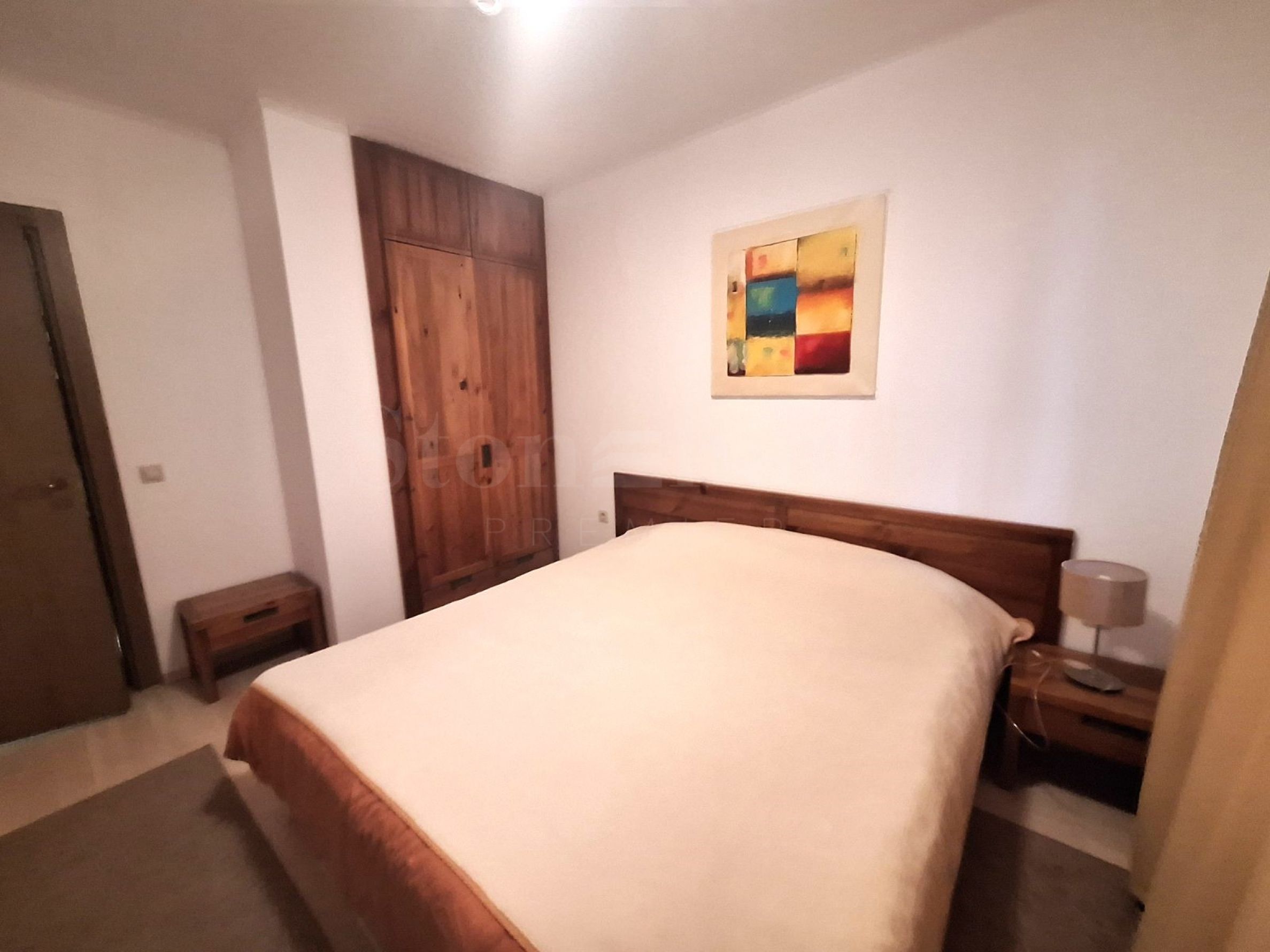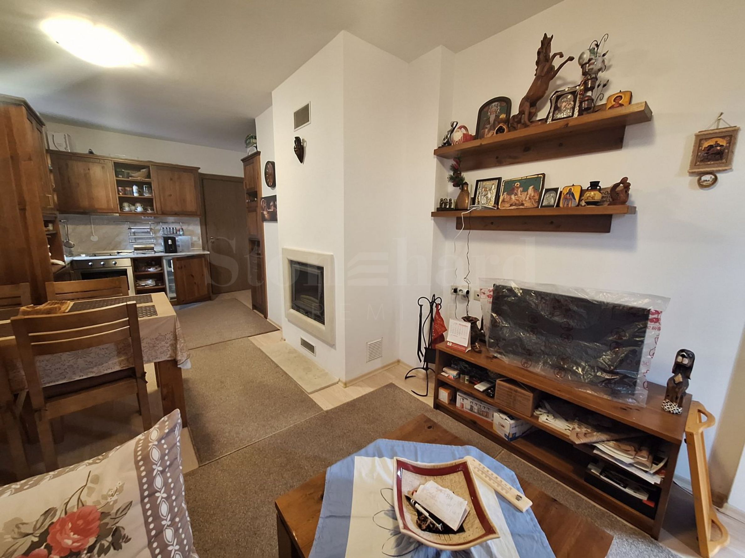 Das gesamte Mobiliar der Unterkunft besteht aus massiver Eiche und wurde mit Liebe zum Detail gestaltet. Das Anwesen ist nach Westen ausgerichtet und befindet sich im 2/5 Stock. Die Gesamtfläche beträgt 102 qm, die Wohnfläche 85 qm. Das Anwesen umfasst 60 qm. aus dem angrenzenden Gelände. Die Küche ist voll möbliert und ausgestattet mit einem Glaskeramik-Kochfeld mit zwei Steckdosen, Absorber, eingebautem Backofen, Geschirrspüler, Waschmaschine, Kühlschrank, Mikrowelle, Spüle, Schränken und Utensilien, Esstisch mit vier Stühlen. In einem der Schränke sind der Dampfkessel und der Kessel versteckt. Das komplett eingerichtete Wohnzimmer verfügt über ein Ecksofa, einen Couchtisch, einen TV mit Schließfach, Regale, einen Kamin und einen Kleiderschrank. Beide Schlafzimmer sind mit einem Doppelbett mit Matratze, Nachttischen, Schminktisch mit Spiegel und Kleiderschrank ausgestattet. Ein Badezimmer ist mit einer Dusche, einem Waschbecken mit Spiegel und das andere mit einer Dusche und einem Waschbecken mit Spiegel ausgestattet. Der Balkon ist einer, mit einem schönen Panorama. Die Heizung erfolgt durch Nahwärme. Die Wohnung ist mit Kabel-TV ausgestattet.
