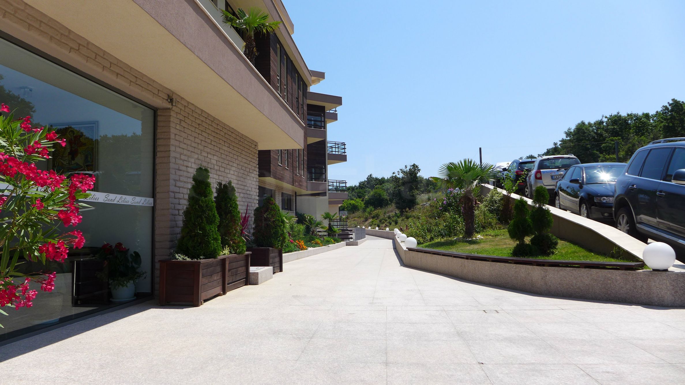 Im Ferienort Sozopol gelegen, mit Panoramablick auf das Meer und einfachem Zugang zu allen Annehmlichkeiten, befindet sich der Sand Lilies Komplex in erster Linie und besticht durch sein unglaubliches Design. Es ist mit leicht erhöhten Plattformen ausgestattet, die sich ideal für Spaß und Entspannung sowie zum Genießen von Panoramablicken eignen. Die verschiedenen Bereiche des Komplexes sind mit den Bereichen verbunden, in denen sich Cafés und Bars, ein elegantes Restaurant, ein modernes Spa und mehrere Geschäfte befinden. Es gibt auch Spielplätze und Gassen mit exotischen Pflanzen.