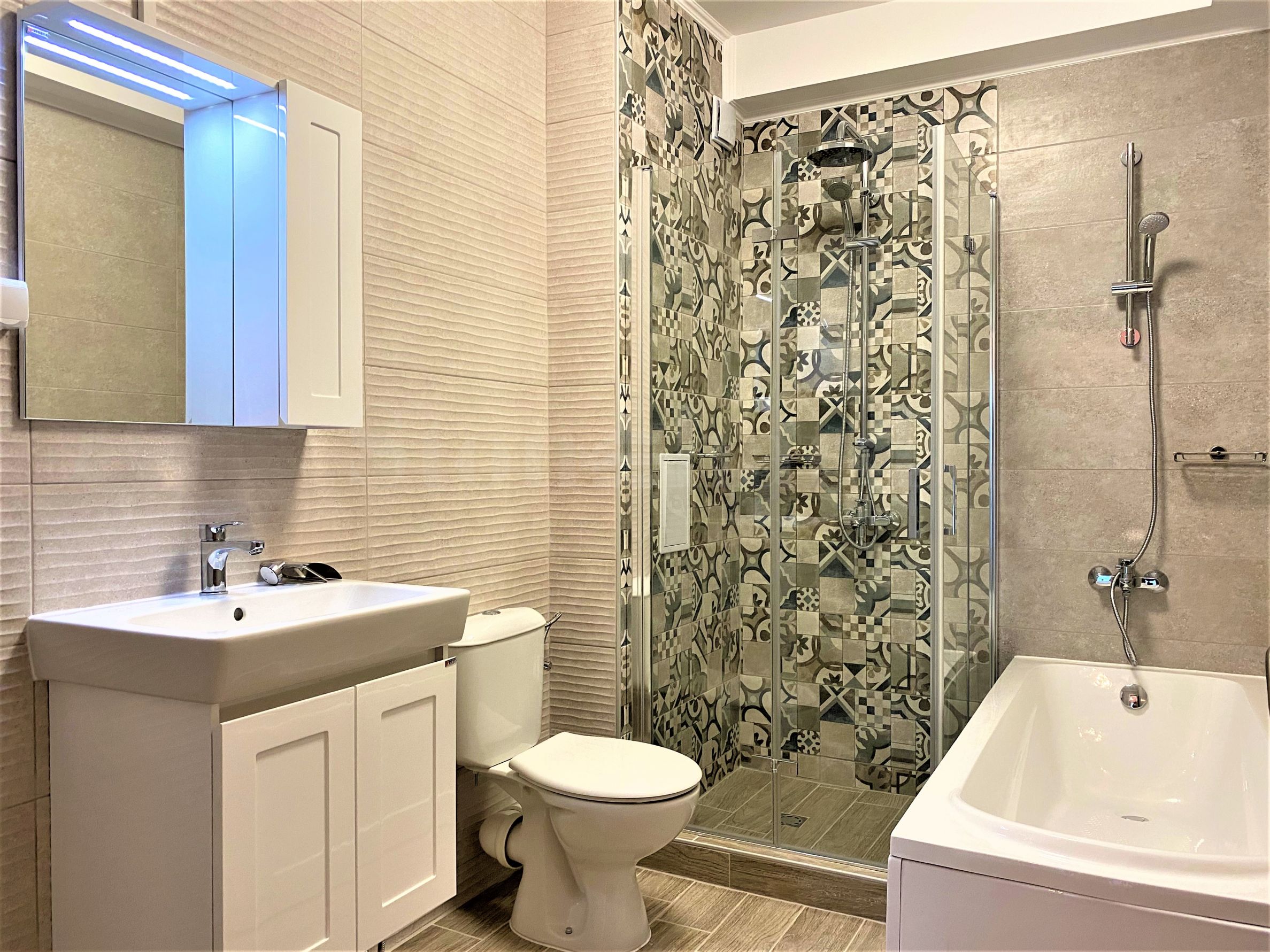 Les plans d'étage des appartements de ce complexe sont conformes aux dernières tendances de la construction moderne. Tous les appartements sont spacieux et lumineux, avec une exposition sud-est et un ensoleillement abondant, avec de grands balcons donnant sur la mer. L'idée architecturale principale dans la conception du complexe est d'ouvrir la superbe vue panoramique sur la mer de la région. Les pièces à vivre et les chambres disposent de portes-fenêtres.