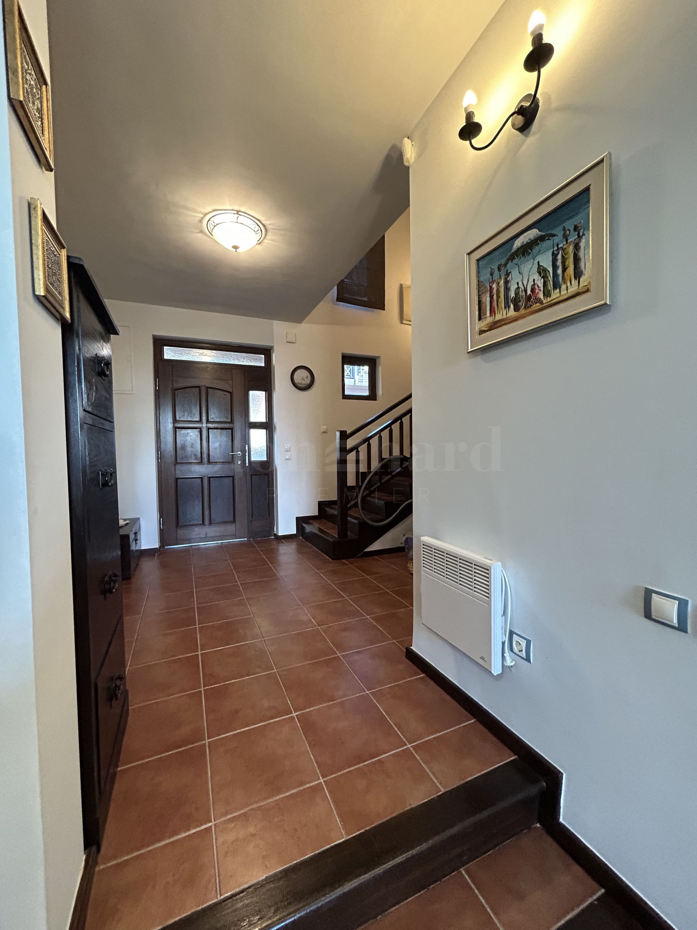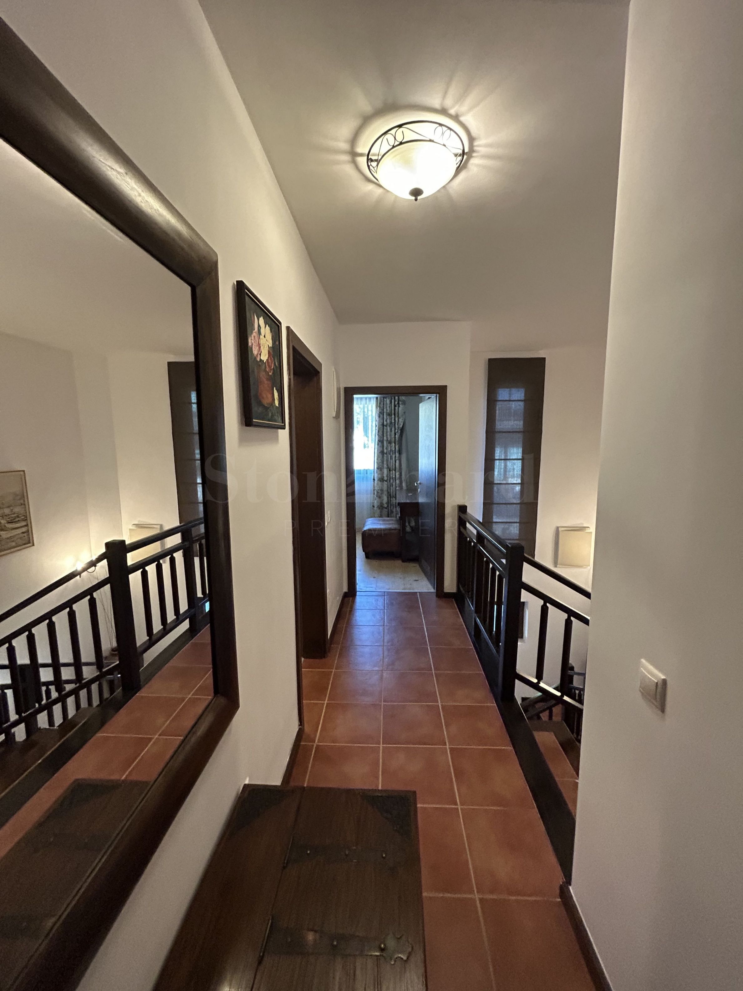 La maison est située sur la deuxième ligne du bord de mer et son emplacement pratique dans le complexe ouvre la vue. La cour de la propriété offre une véranda spacieuse avec un barbecue et une cour magnifiquement aménagée avec une clôture en bois massif.