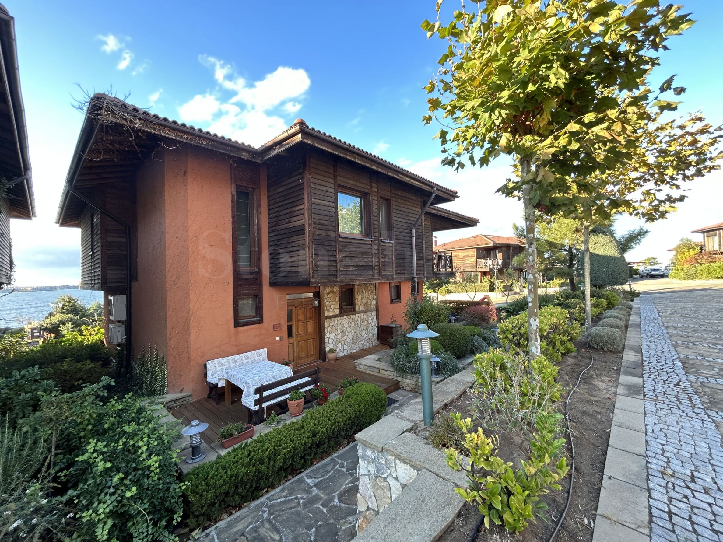 Nous vous présentons une maison jumelée unifamiliale exceptionnelle avec sa propre cour et vue sur la mer, située dans un complexe prestigieux avec un concept de vie distinctif et un design architectural, avec un emplacement côtier à Sozopol - Sozopolis.
