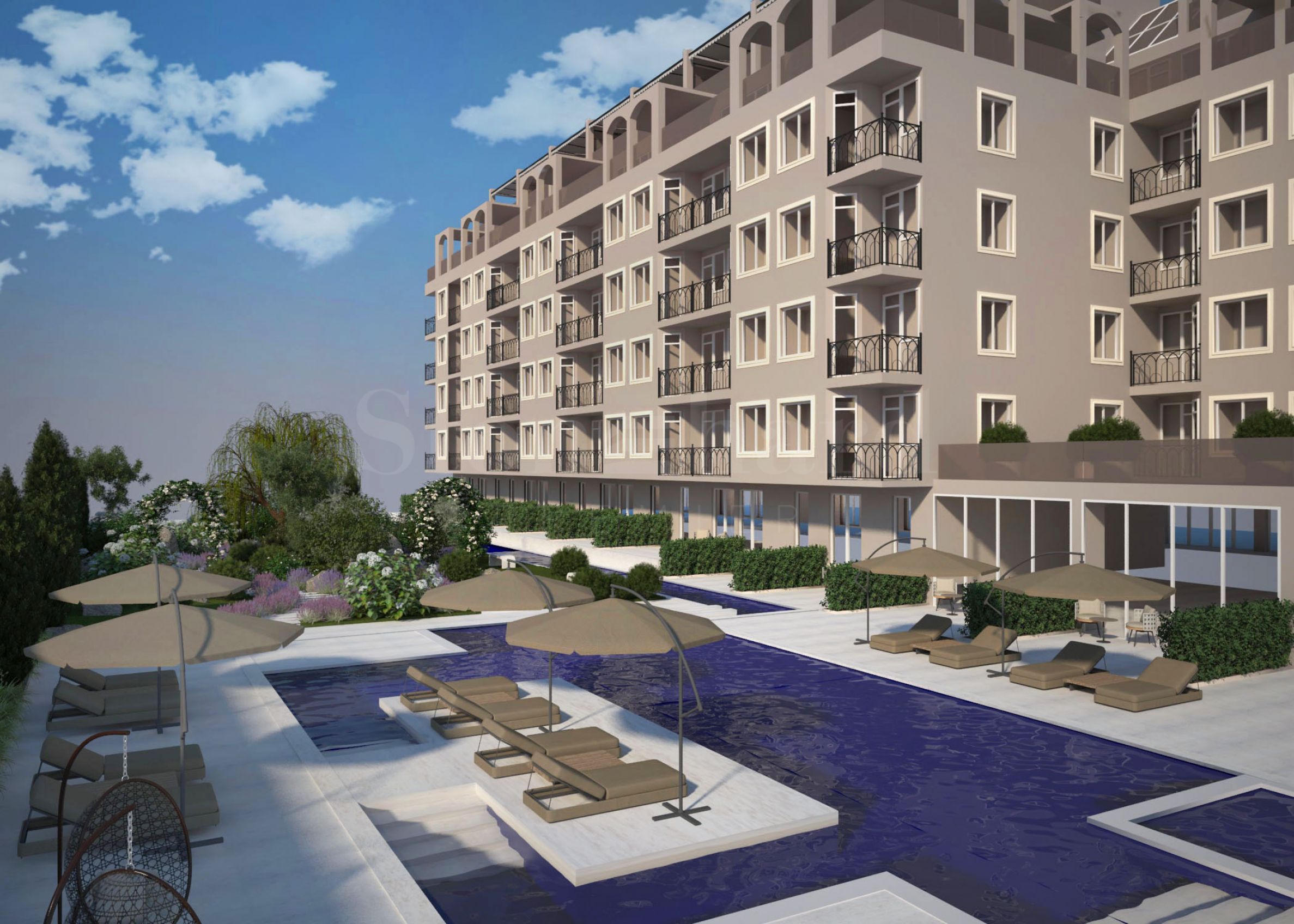 Situé à seulement 250 mètres de la plage de Sunny Beach, à proximité des lieux de divertissement les plus attrayants Zazu et Bedroom Beach, le complexe s'inspire de la Côte d'Azur et sera rempli de matériaux de haute qualité, dans des couleurs pastel douces, avec des piscines design, un aménagement paysager riche, de beaux jardins et des zones de loisirs.