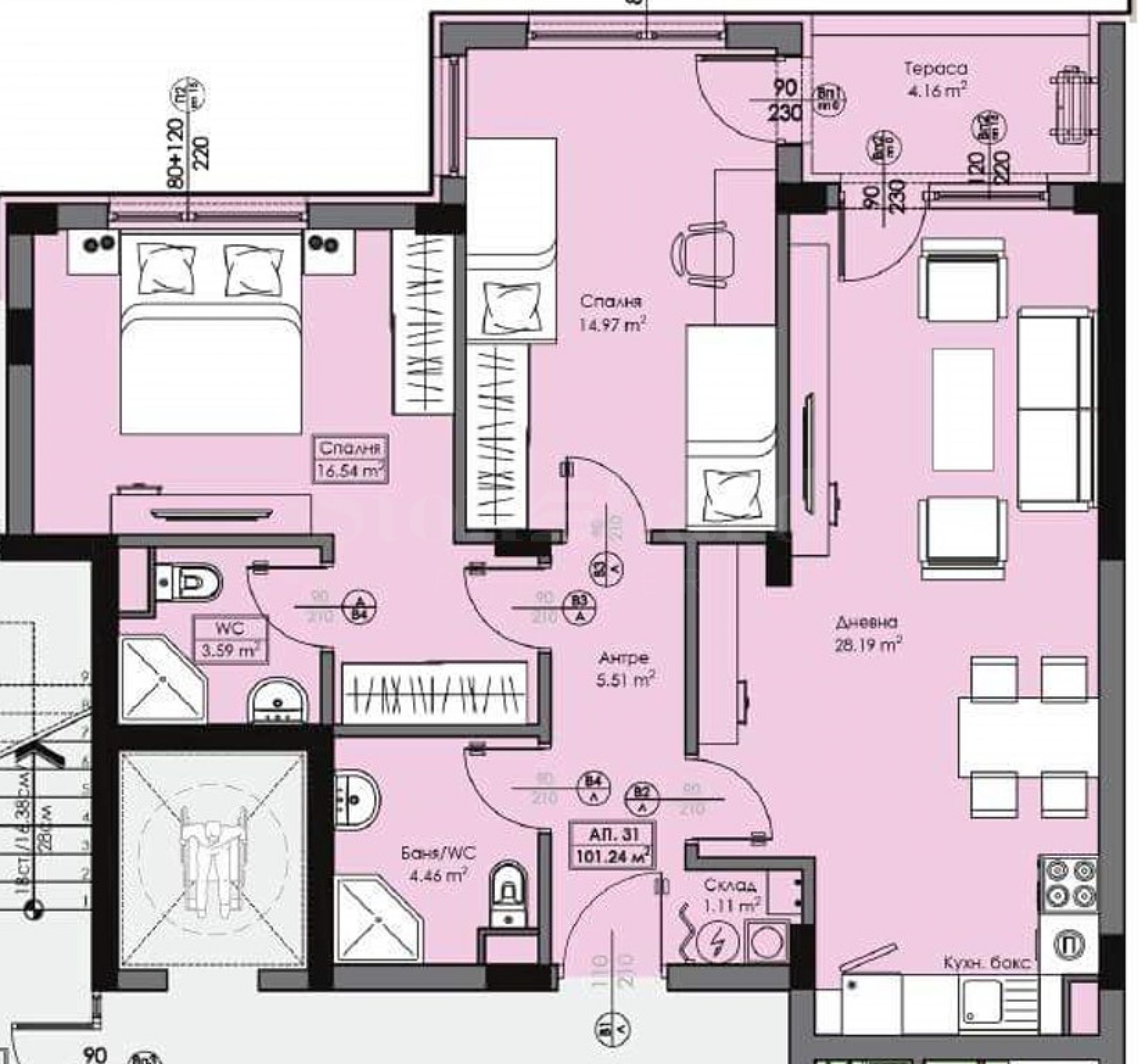 Zones d'habitation: 101.33 m 2