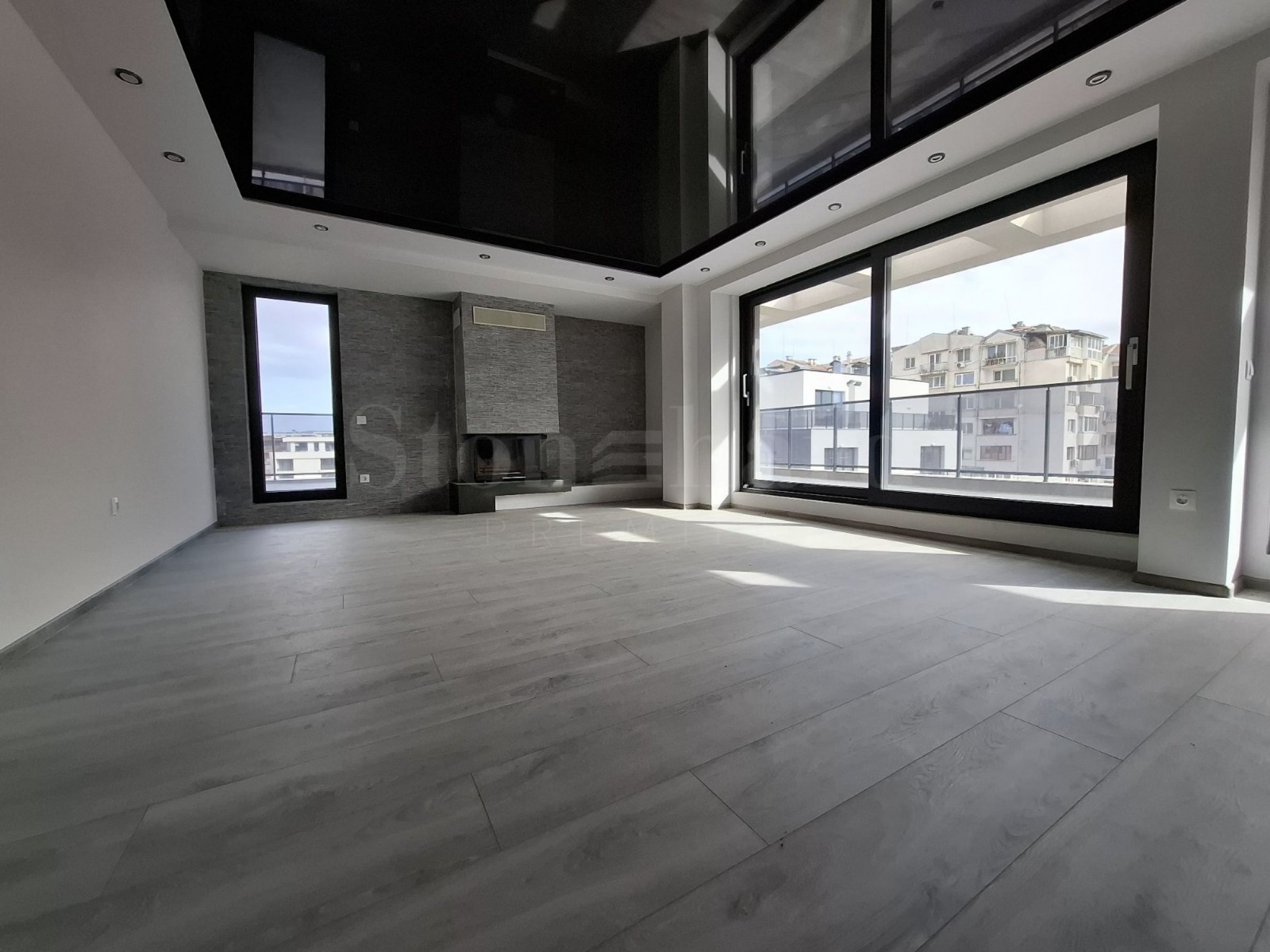 terrasse panoramique sur le toit accessible depuis toutes les pièces. Les pièces sont finies "clés en main", avec des revêtements de sol prêts. La cheminée et le plafond miroir impressionnant avec éclairage intégré dans le salon contribuent à une sensation de confort et de convivialité, combinée à un style urbain moderne.