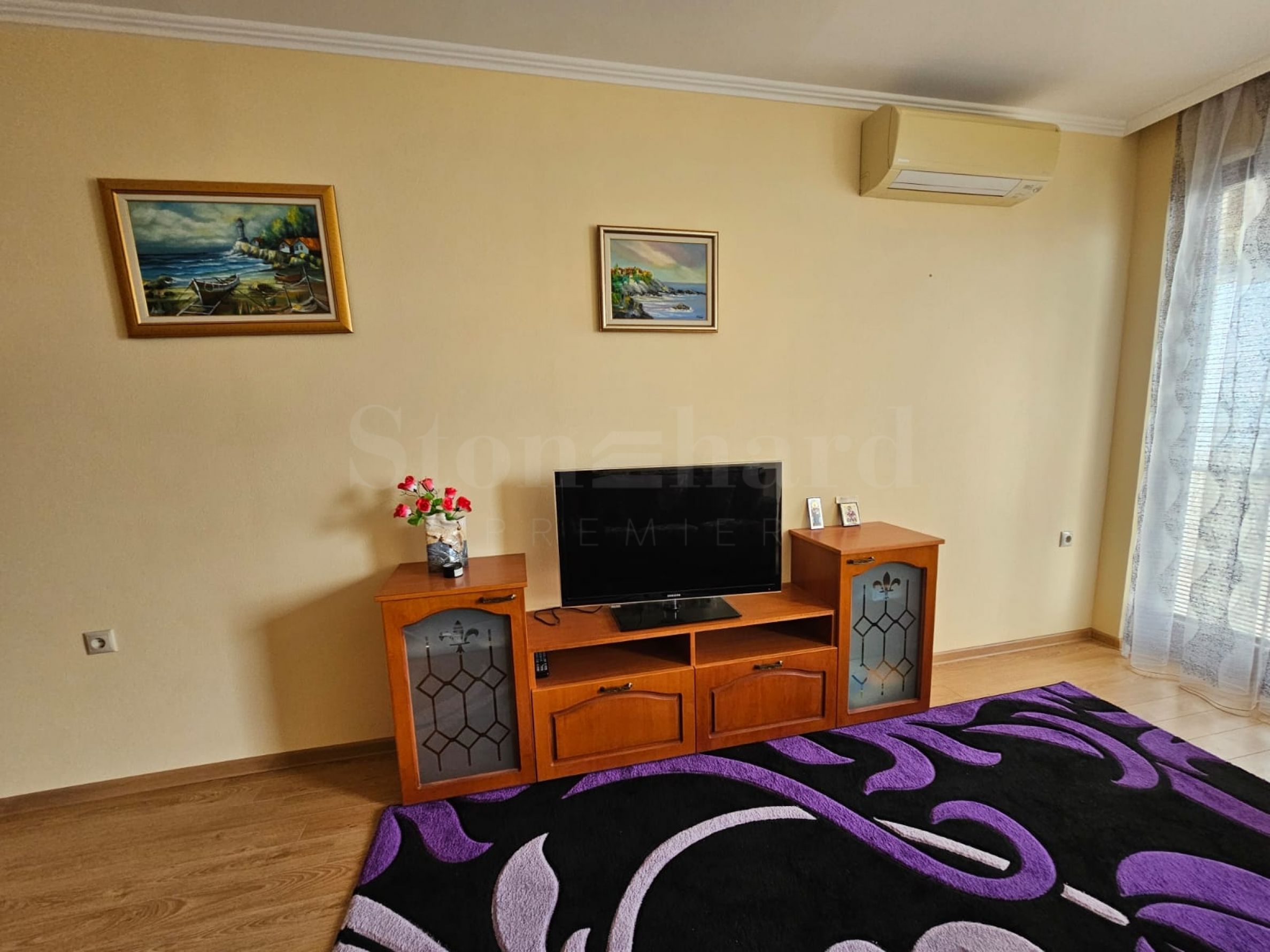 En première ligne, à proximité immédiate des restaurants, bars, magasins, cafés et autres commodités. La plage de la station balnéaire bénéficie d'une eau de mer d'une propreté exceptionnelle, d'une longue et large bande de sable, et est l'une des préférées des visiteurs de Varna.
