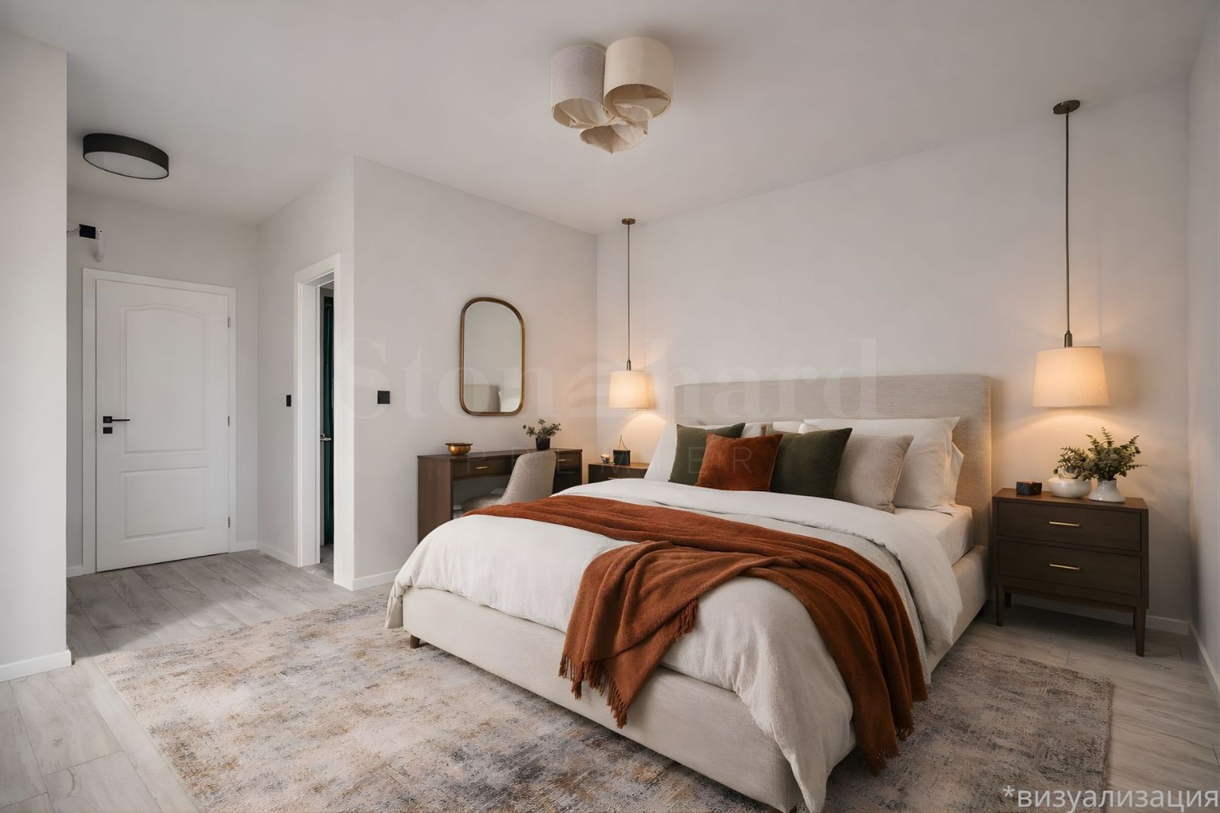 • deux grandes chambres de 22 m² chacune, chacune avec sa propre salle de bain avec toilettes (en suite) et une niche adaptée pour un dressing privé ;