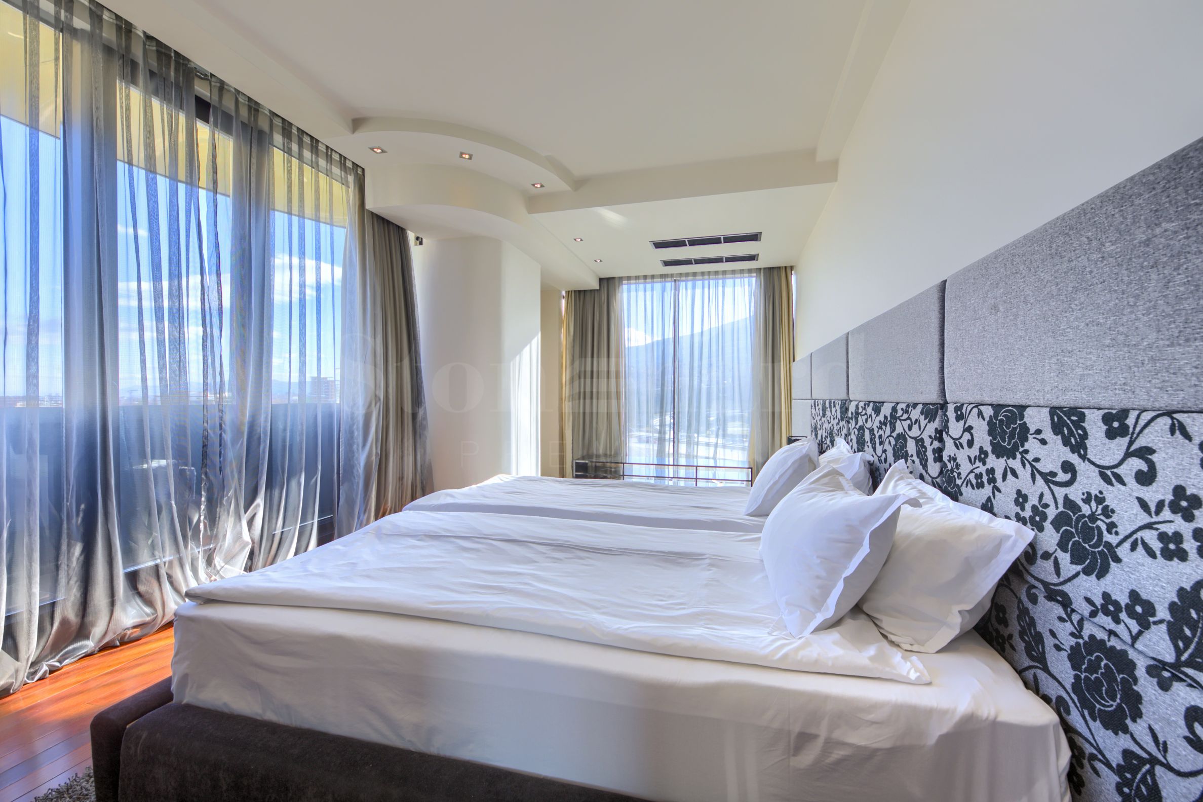 Il y a trois appartements par étage dans l'immeuble, luxueusement finis avec des matériaux de la plus haute qualité. Grandes pièces lumineuses avec des fenêtres du sol au plafond. Parquets en bois naturel, plafonds de 3 m, entièrement meublés. Convient pour un investissement avec un rendement garanti de 5 %.