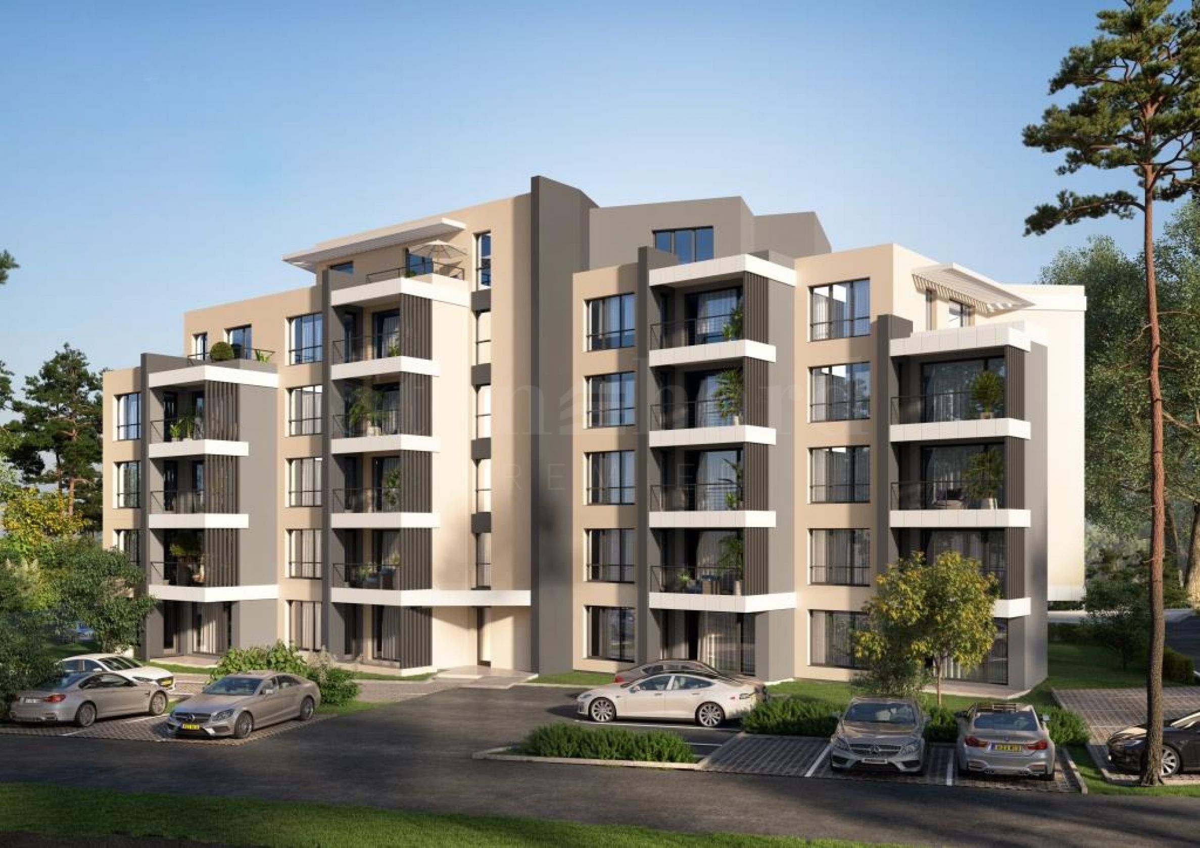 Les appartements sont répartis sur 6 étages et offrent une vue sur la mer, une vue latérale sur la mer et une vue sur la cour intérieure. Les propriétés sont de type deux chambres et trois chambres. L'immeuble dispose de places de stationnement qui peuvent être achetées séparément, notamment celles pour véhicules électriques et celles pour personnes handicapées.