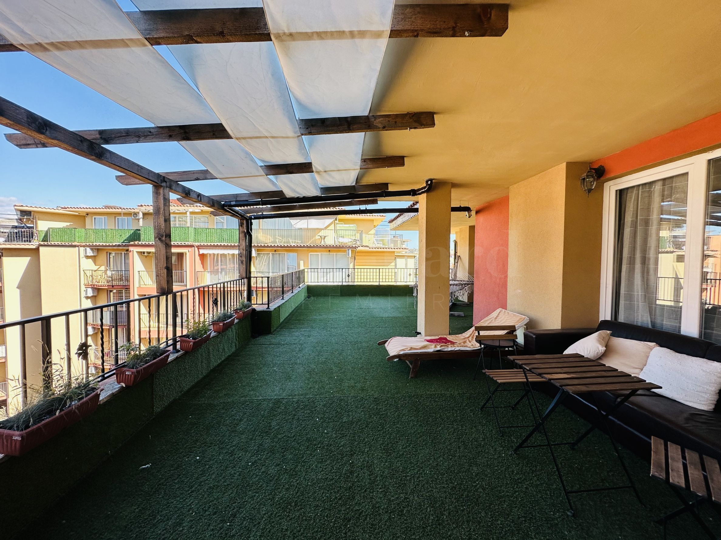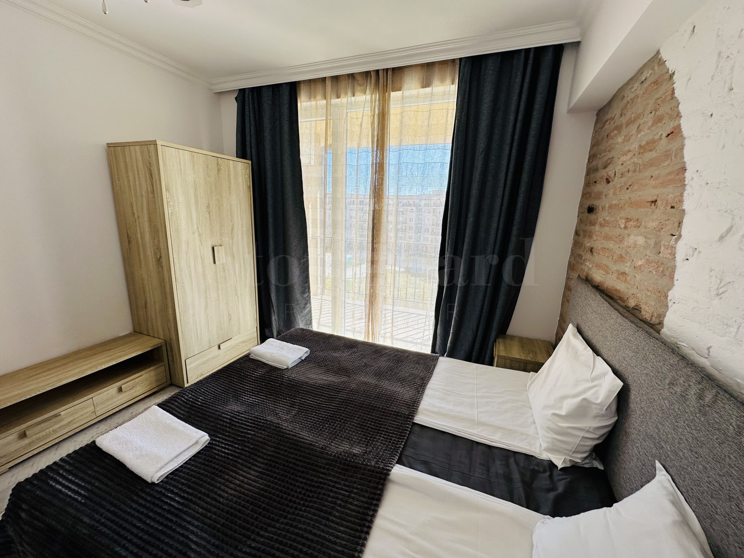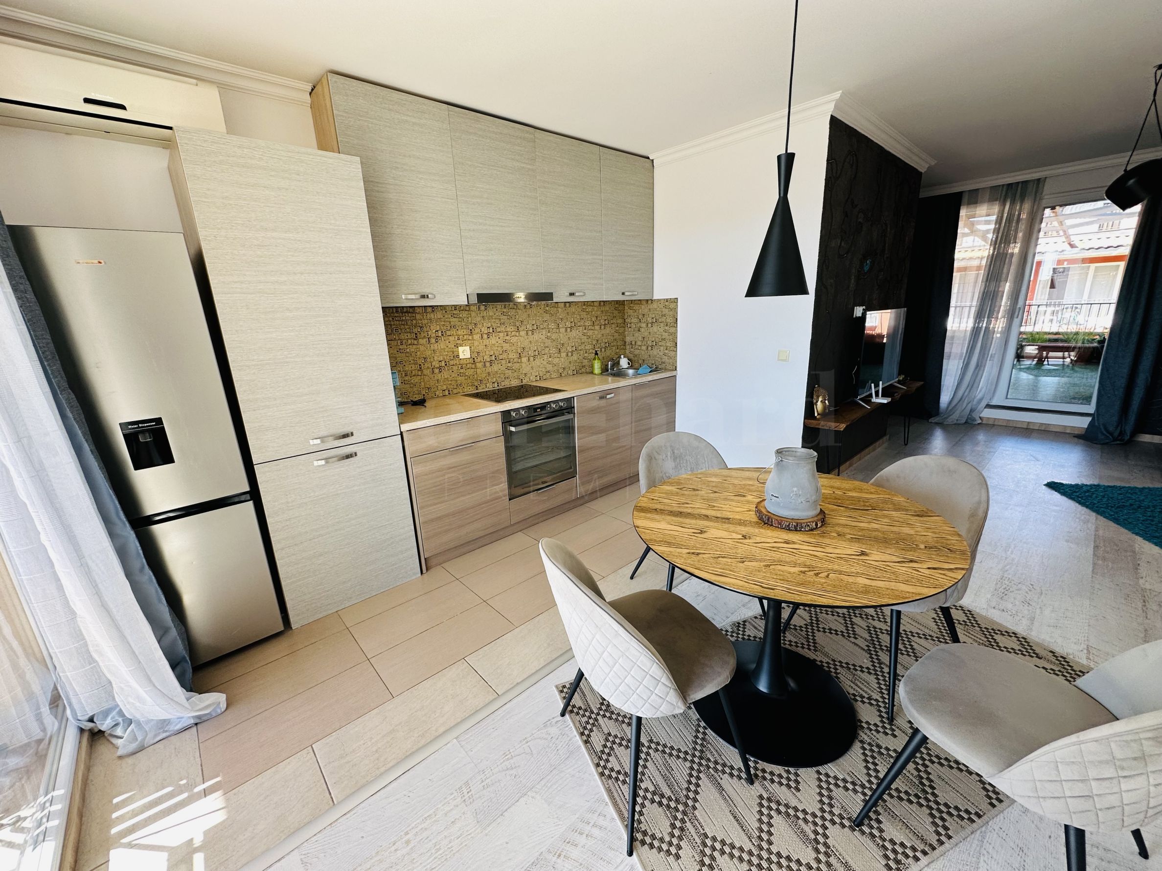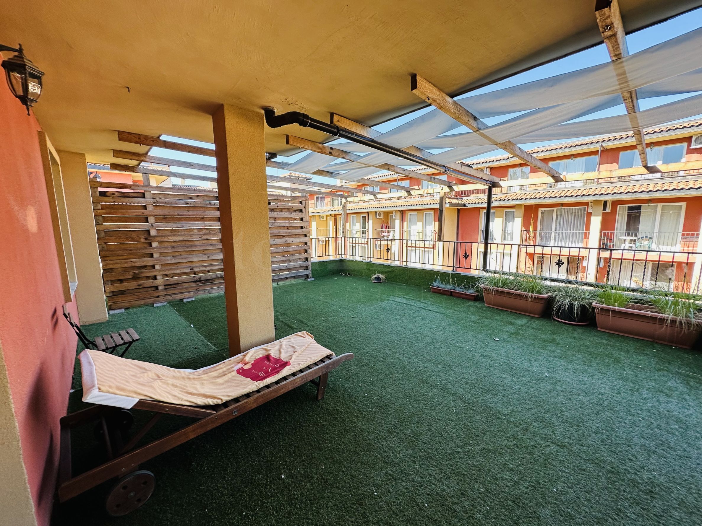 Le complexe est sécurisé par un portail, un contrôle d'accès, une sécurité 24h/24 et une vidéosurveillance, vous garantissant un séjour paisible et en toute autonomie. À proximité se trouvent un arrêt de bus et des commerces de proximité, et à seulement 250 mètres du complexe, une plage paradisiaque bordée de dunes naturelles. Deux plages prisées, « Cacao Beach » et « Bedroom », avec leurs restaurants de renommée internationale à l'ambiance unique, leurs événements exceptionnels et leur cuisine raffinée et inoubliable, sont également à 250 mètres du complexe. L'endroit est idéal pour bronzer, pratiquer divers sports nautiques et profiter de soins spa. La vieille ville de Nessebar, classée au patrimoine mondial de l'UNESCO, est également à proximité.