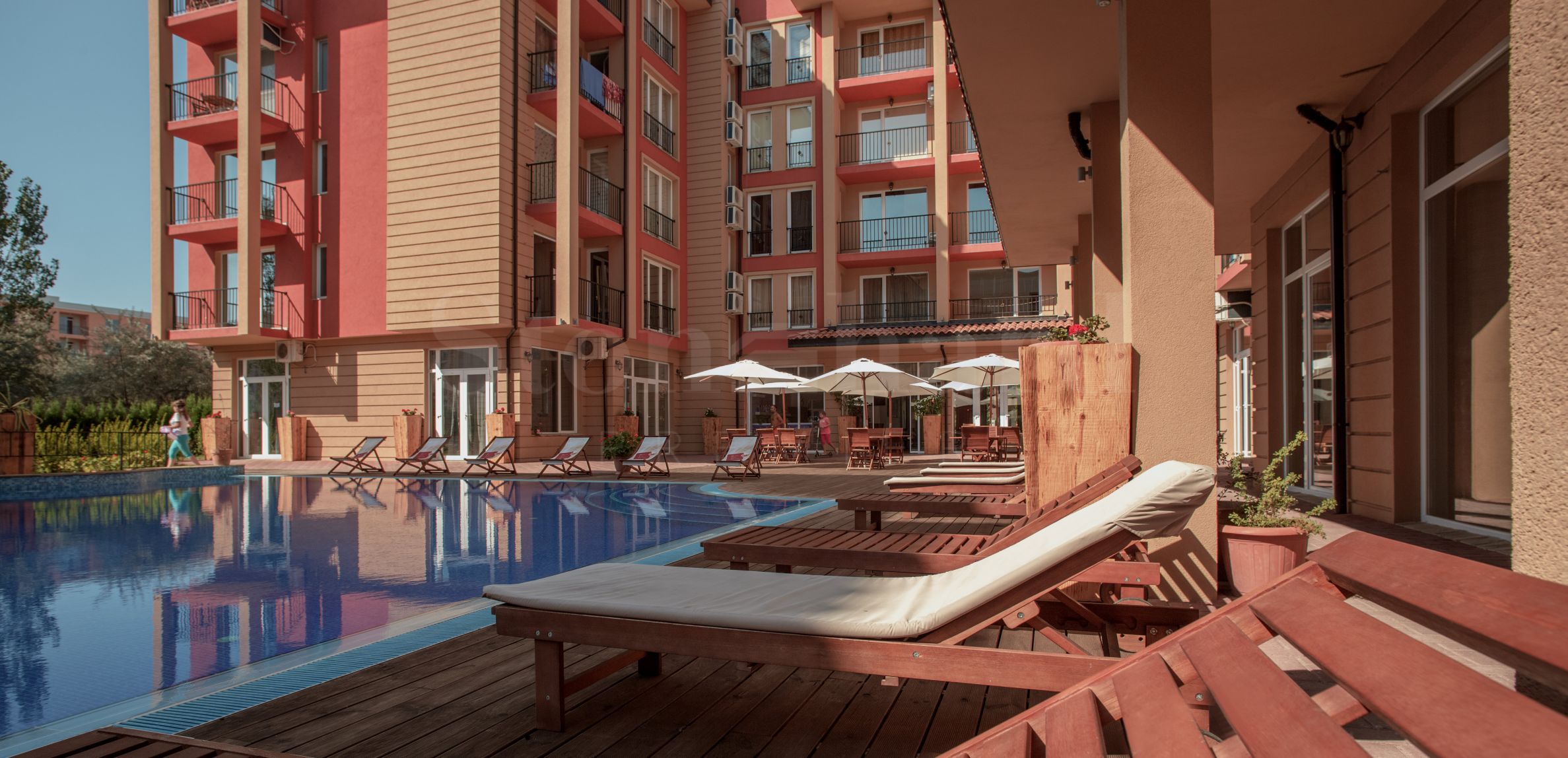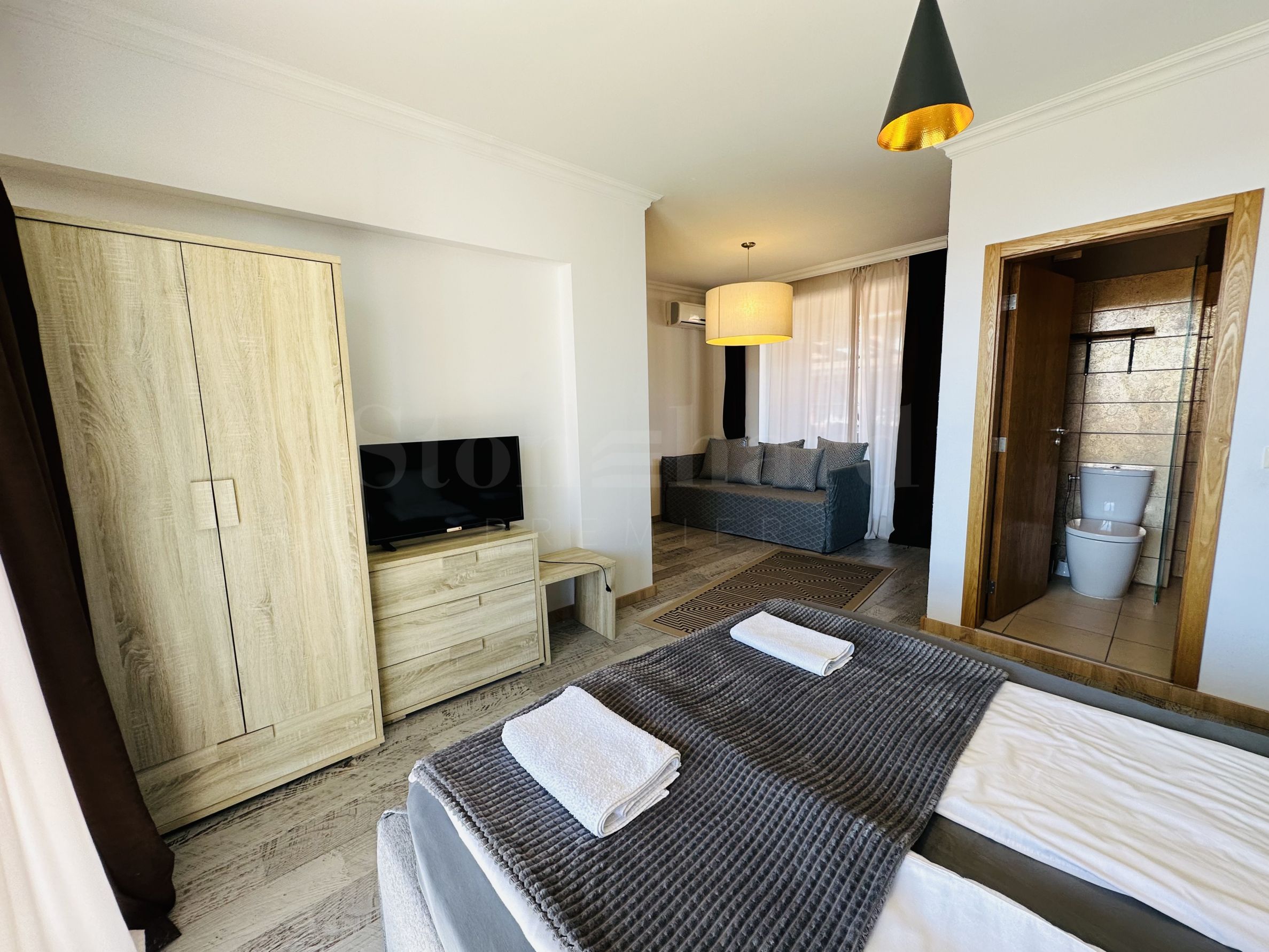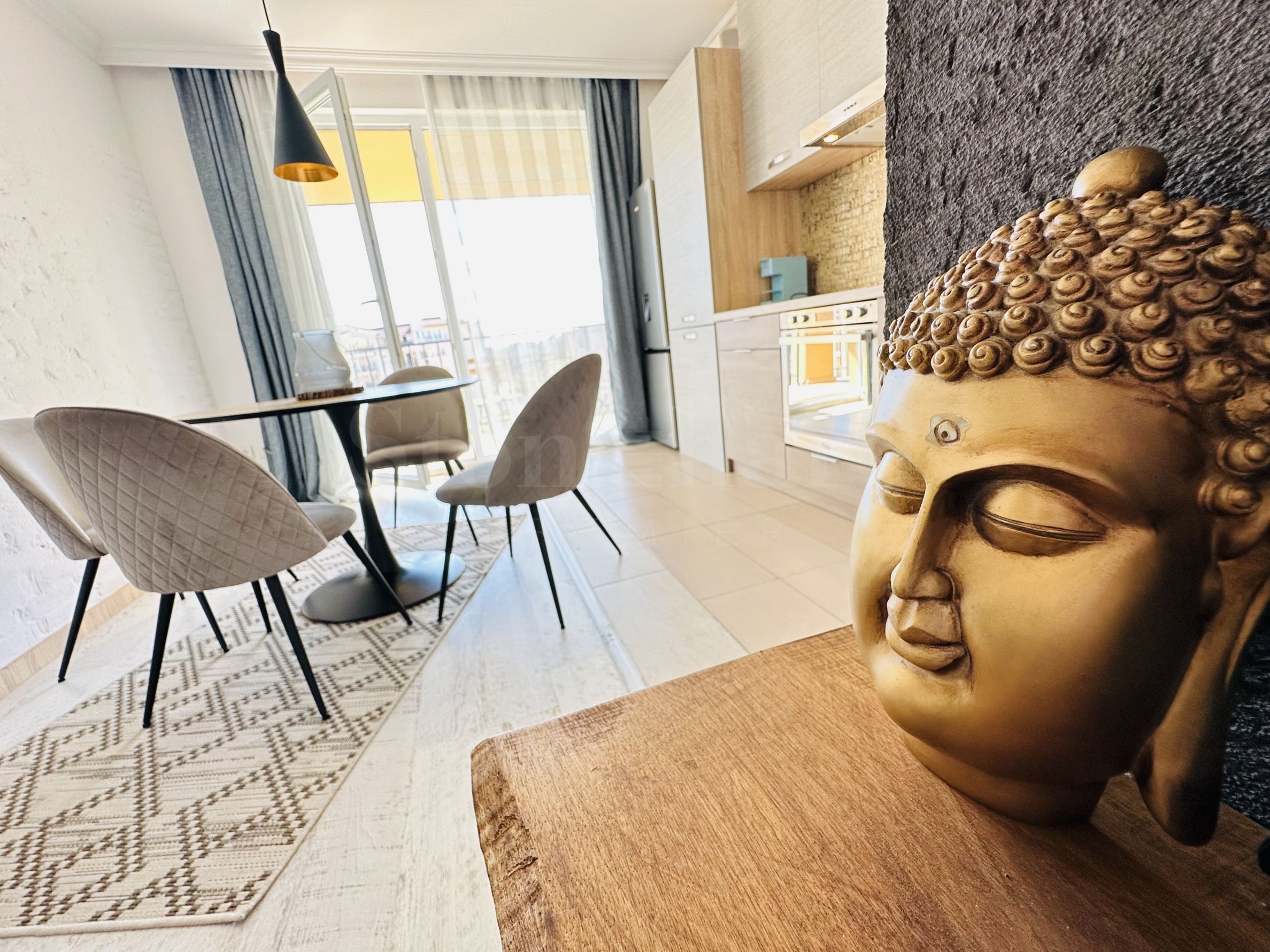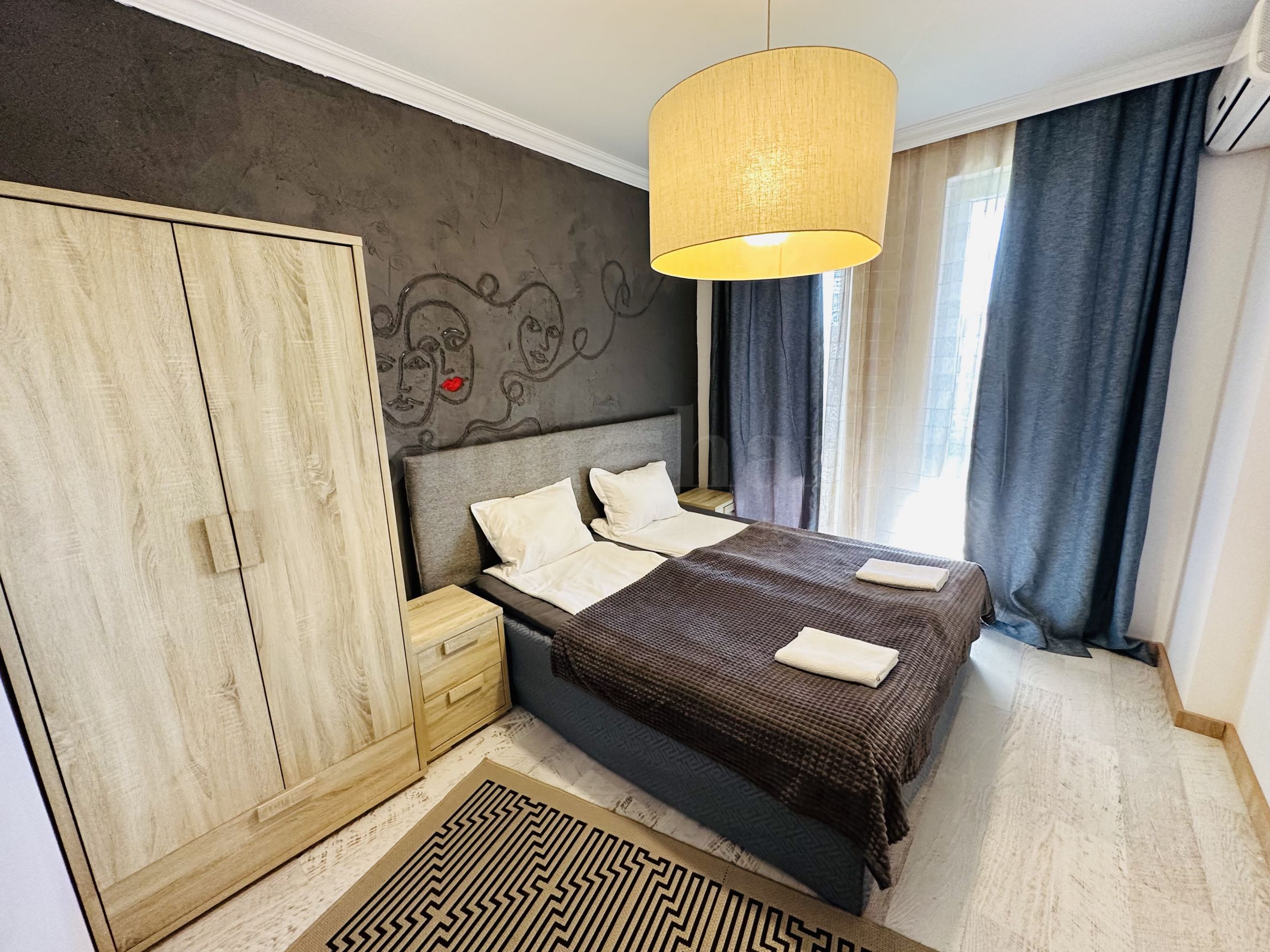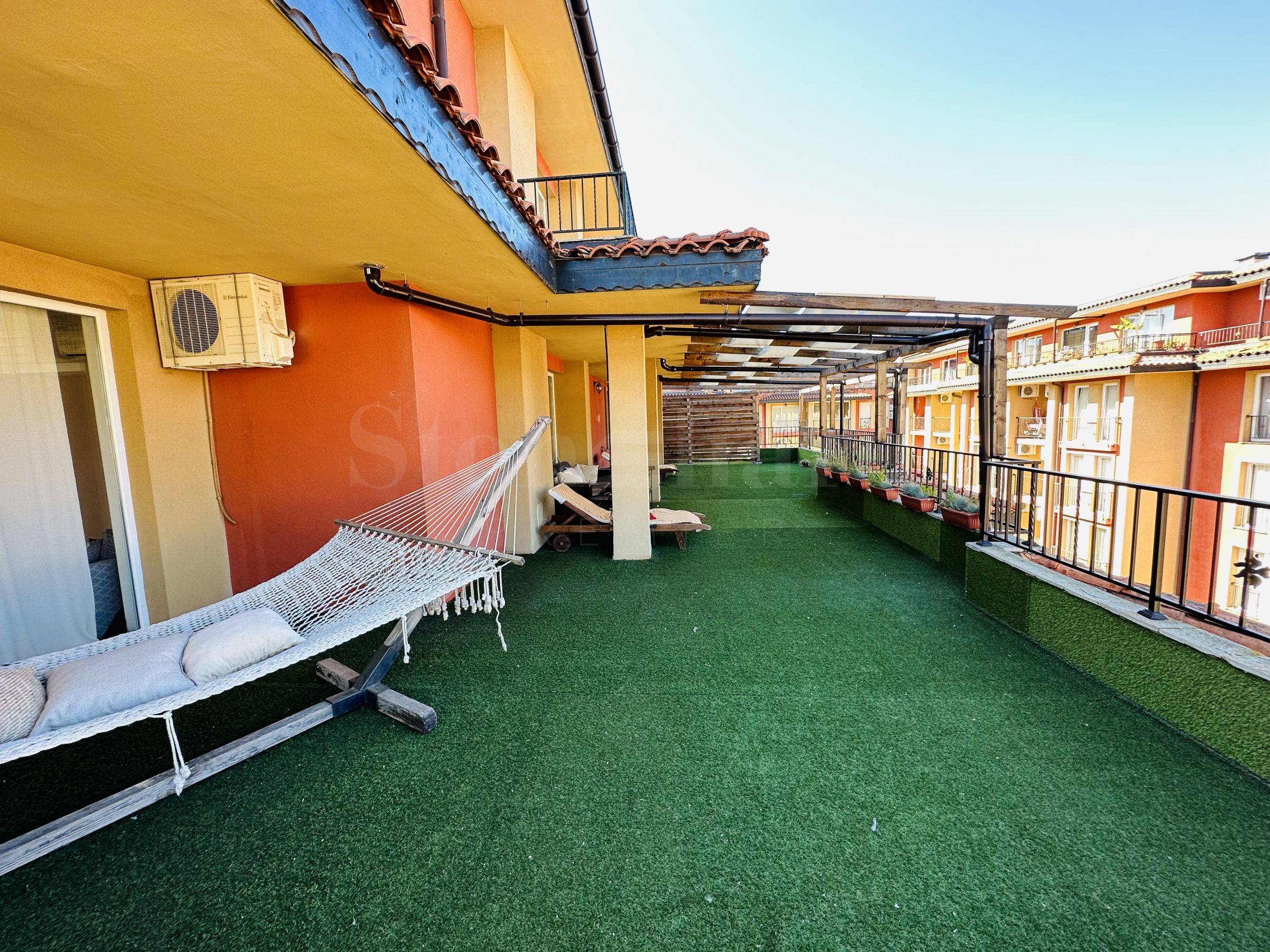 Le complexe est sécurisé par un portail, un contrôle d'accès, une sécurité 24h/24 et une vidéosurveillance, vous garantissant un séjour paisible et en toute autonomie. À proximité se trouvent un arrêt de bus et des commerces de proximité, et à seulement 250 mètres du complexe, une plage paradisiaque bordée de dunes naturelles. Deux plages prisées, « Cacao Beach » et « Bedroom », avec leurs restaurants de renommée internationale à l'ambiance unique, leurs événements exceptionnels et leur cuisine raffinée et inoubliable, sont également à 250 mètres du complexe. L'endroit est idéal pour bronzer, pratiquer divers sports nautiques et profiter de soins spa. La vieille ville de Nessebar, classée au patrimoine mondial de l'UNESCO, est également à proximité.
