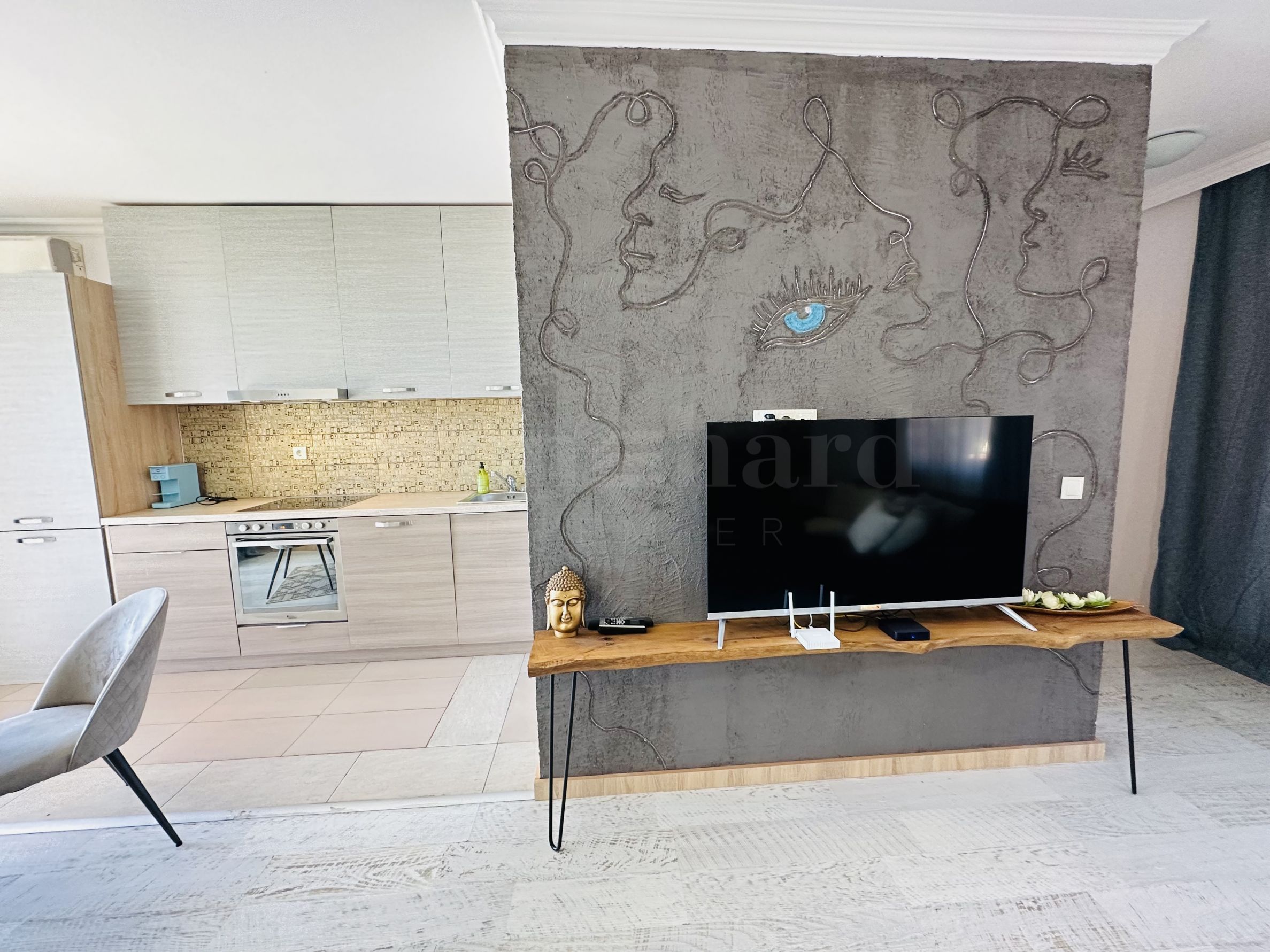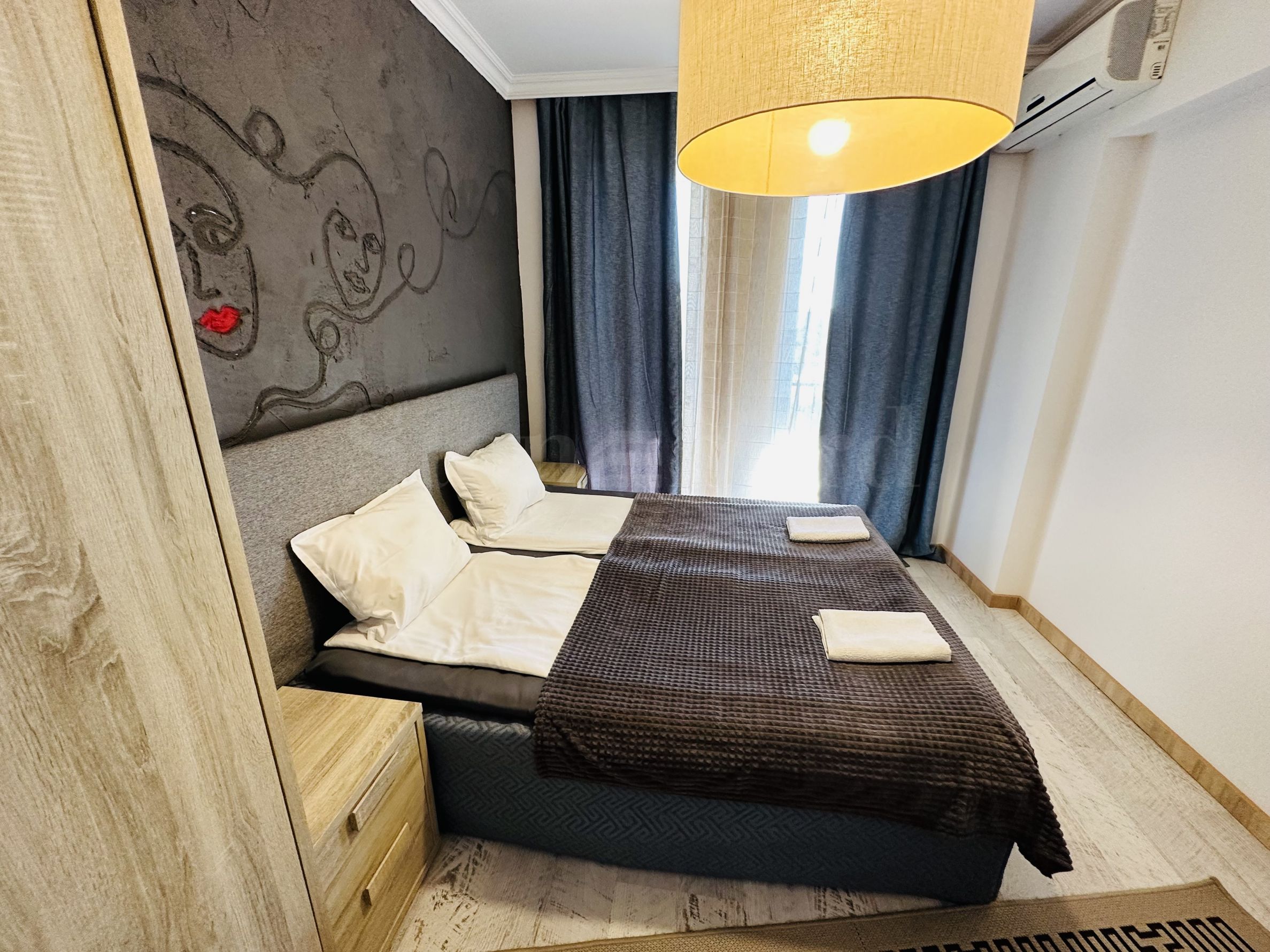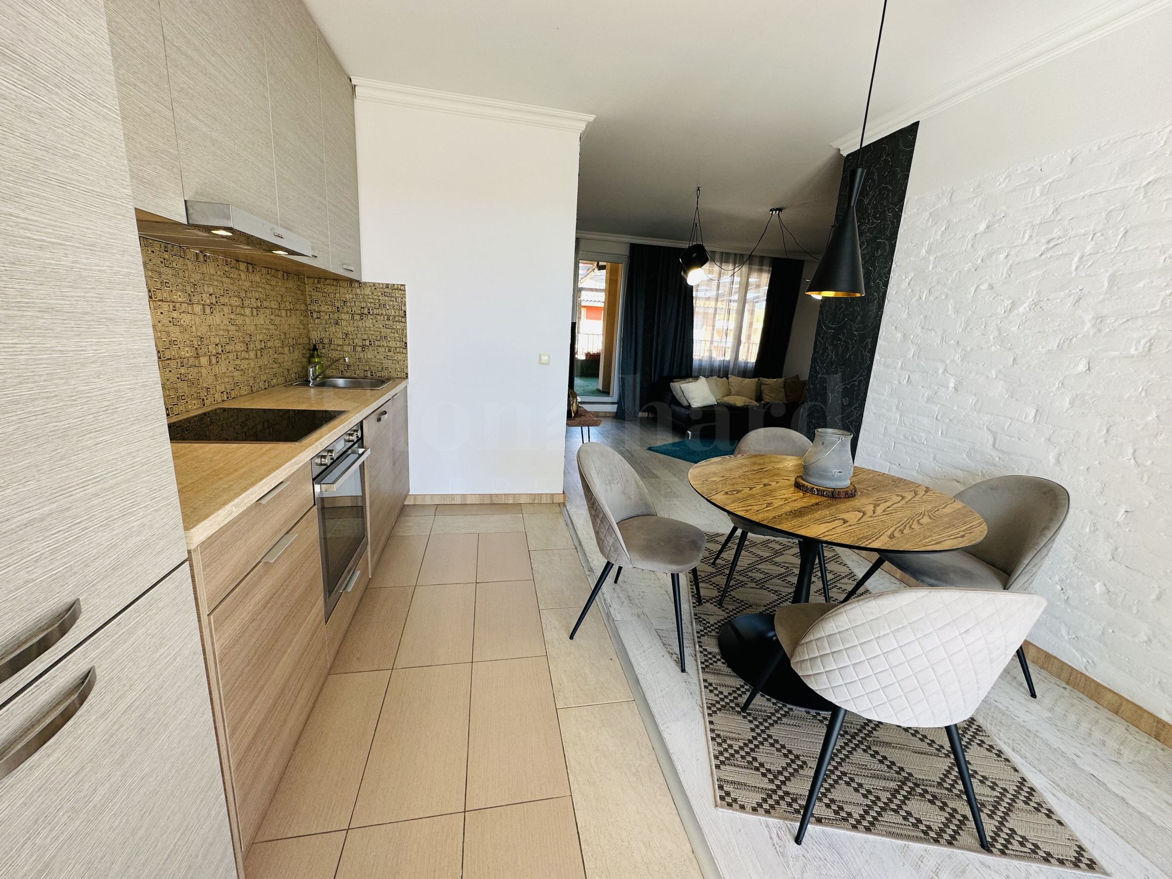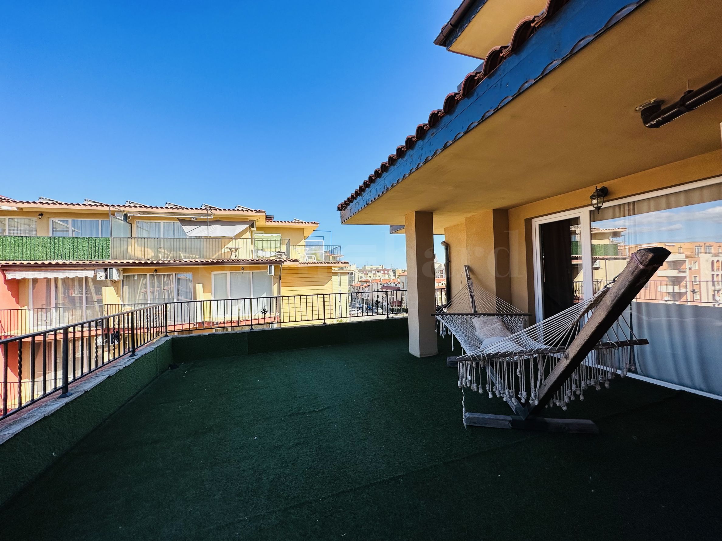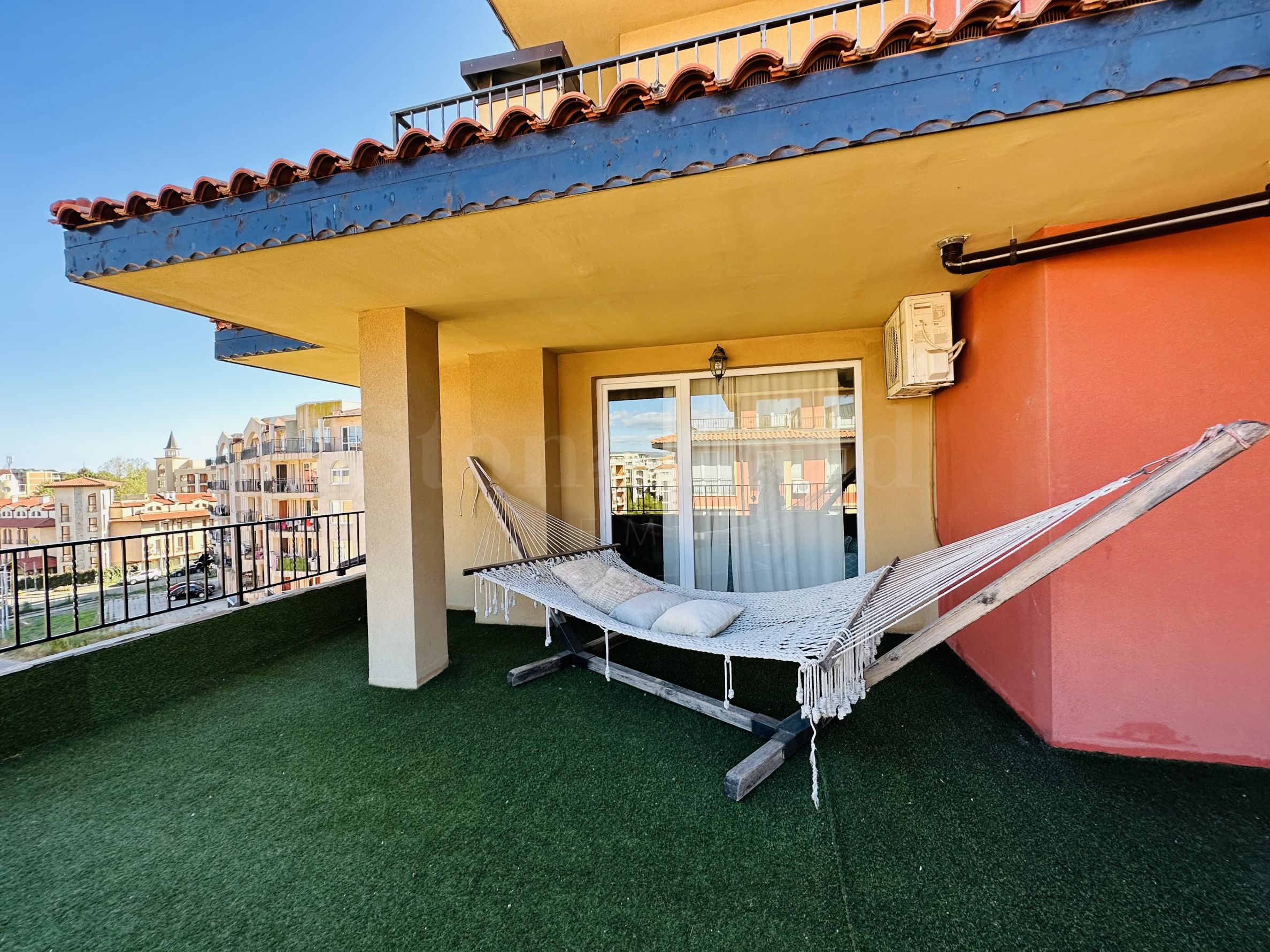 Le complexe est sécurisé par un portail, un contrôle d'accès, une sécurité 24h/24 et une vidéosurveillance, vous garantissant un séjour paisible et en toute autonomie. À proximité se trouvent un arrêt de bus et des commerces de proximité, et à seulement 250 mètres du complexe, une plage paradisiaque bordée de dunes naturelles. Deux plages prisées, « Cacao Beach » et « Bedroom », avec leurs restaurants de renommée internationale à l'ambiance unique, leurs événements exceptionnels et leur cuisine raffinée et inoubliable, sont également à 250 mètres du complexe. L'endroit est idéal pour bronzer, pratiquer divers sports nautiques et profiter de soins spa. La vieille ville de Nessebar, classée au patrimoine mondial de l'UNESCO, est également à proximité.