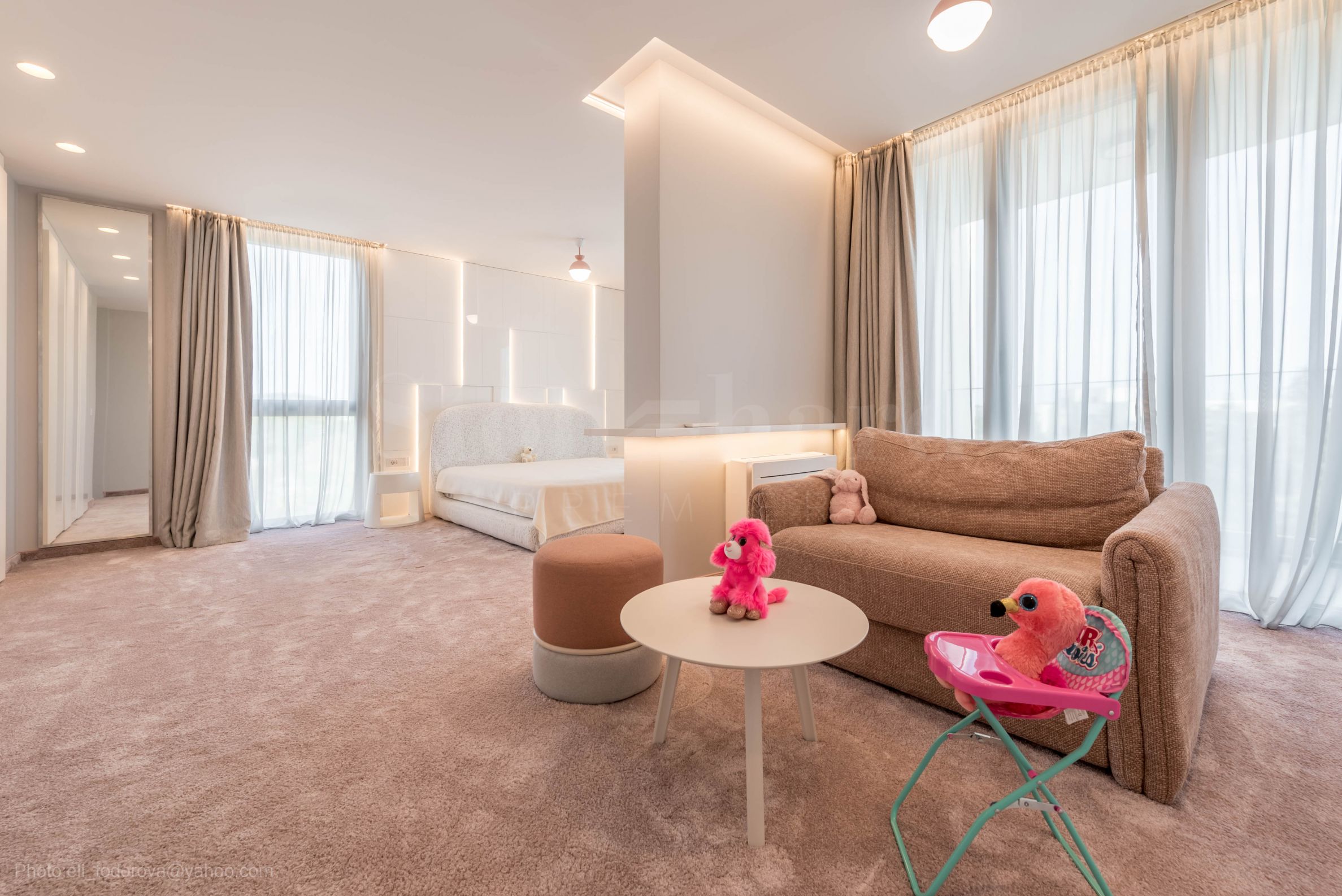 deux studios pour enfants - pour une fille et pour un garçon, avec un endroit pour dormir, une salle pour jouer et étudier, une salle de bain séparée et une terrasse ;