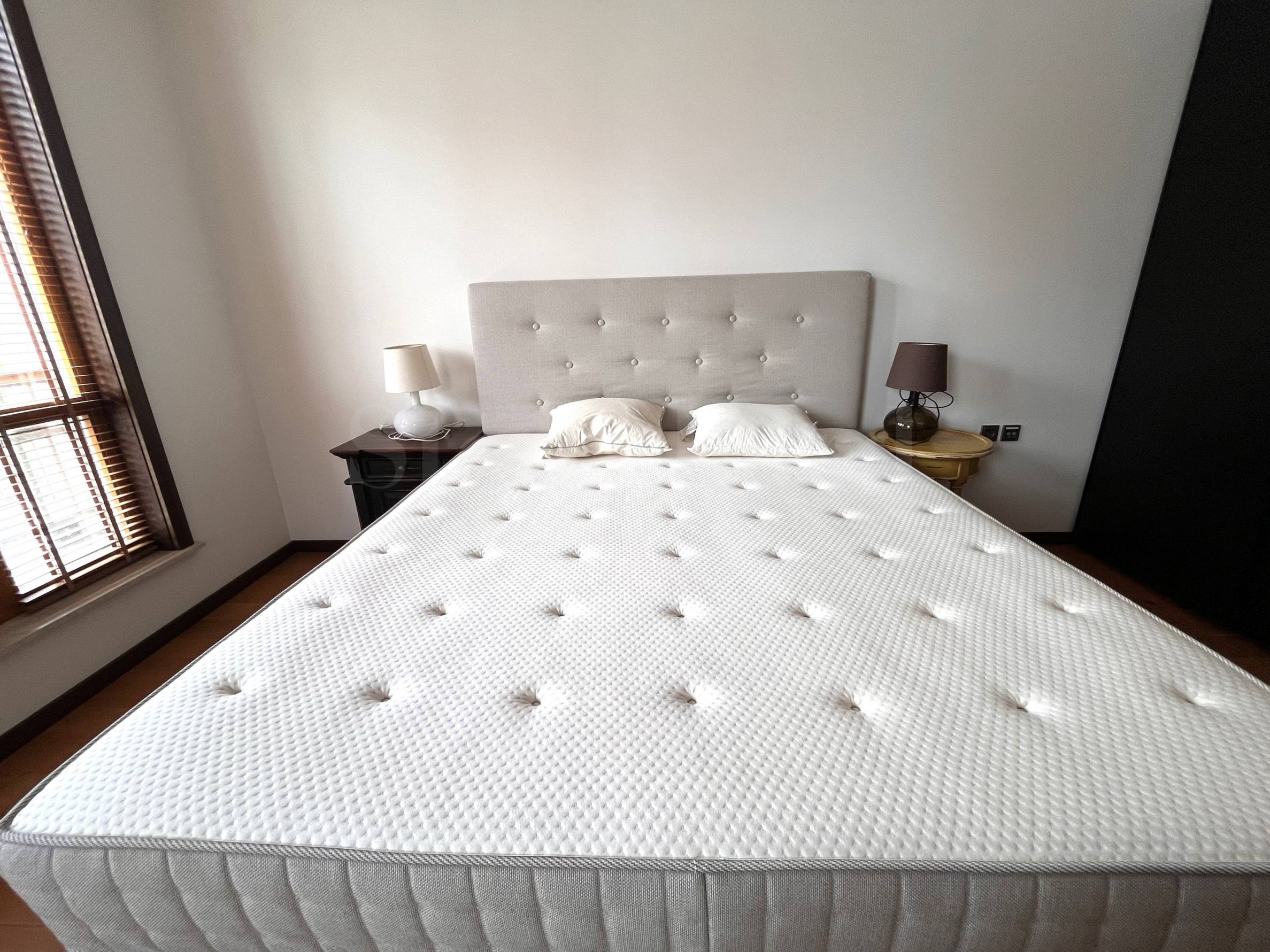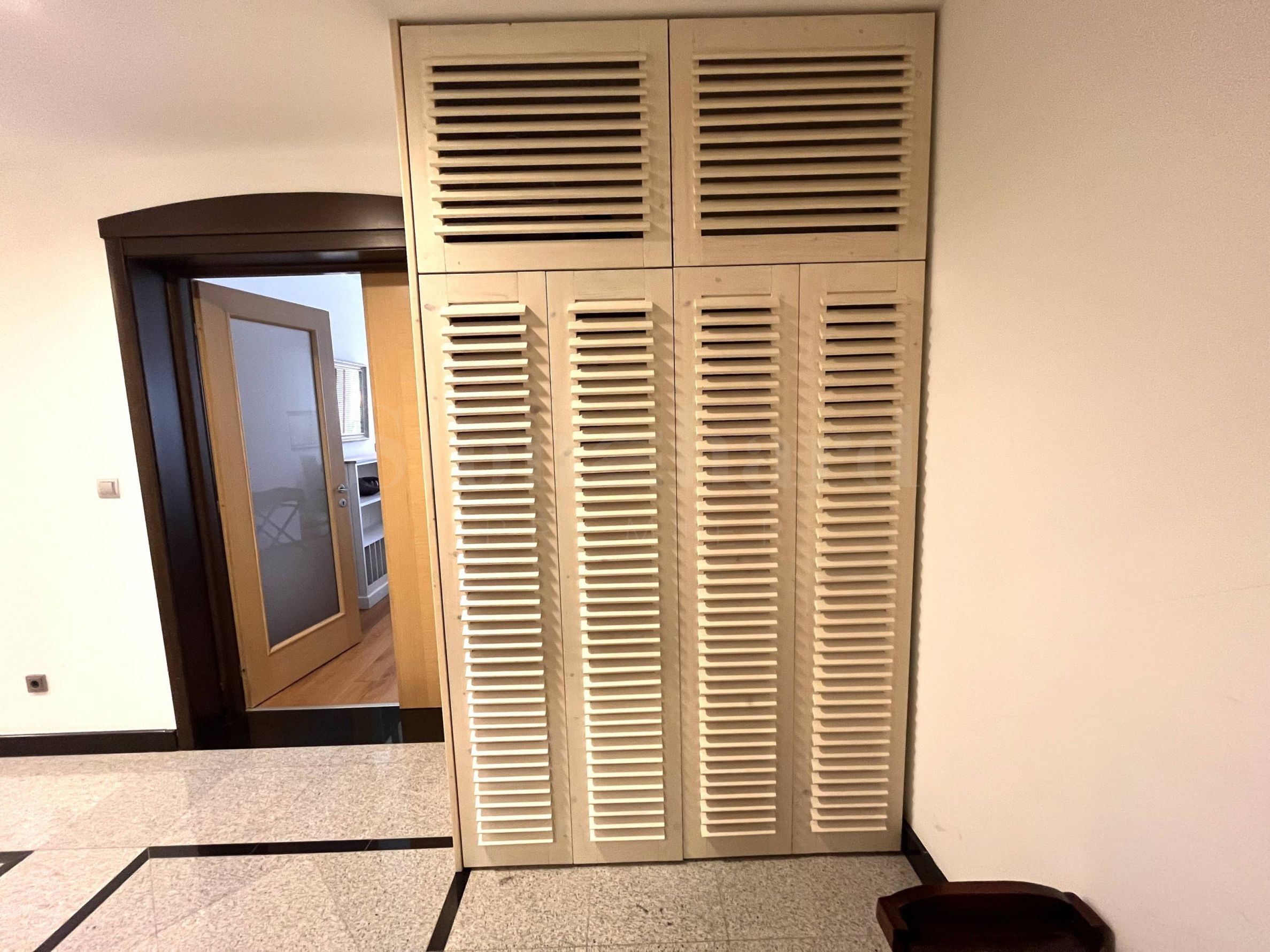 deux terrasses. L'appartement est entièrement meublé et équipé avec des meubles modernes et confortables, des appareils haut de gamme et une attention portée à chaque détail. Les fenêtres sont en bois d'eucalyptus et offrent une excellente isolation phonique, et le sol est en parquet naturel à trois couches.