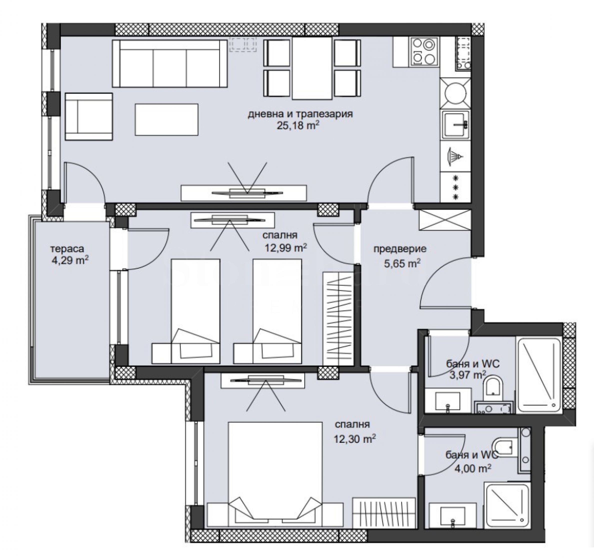 Appartement trois pièces dans un nouvel immeuble de charme dans le quartier "Hristo Smirnenski"