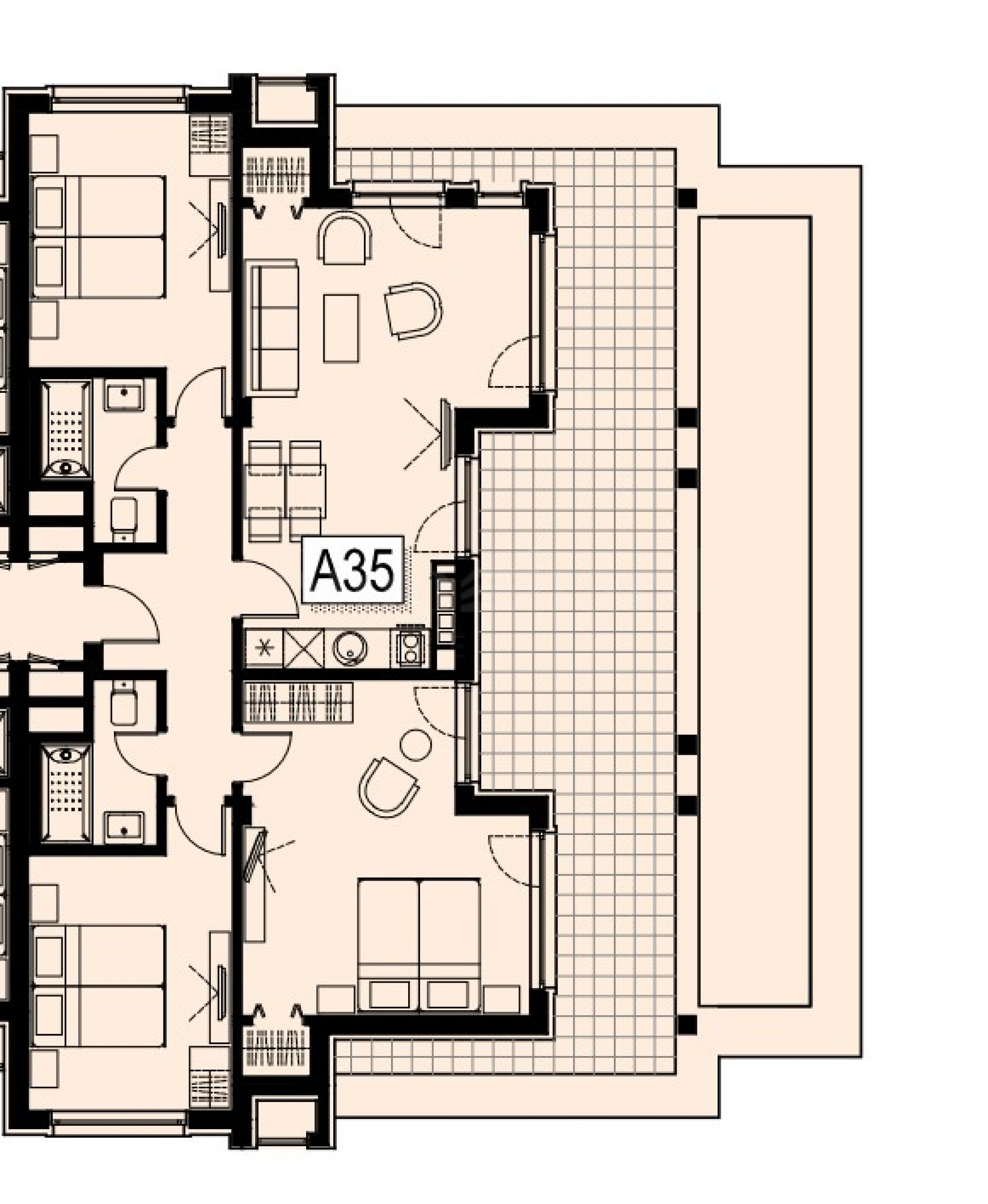 terrasse spacieuse. L'appartement est proposé dans un état d'achèvement "clé en main".
