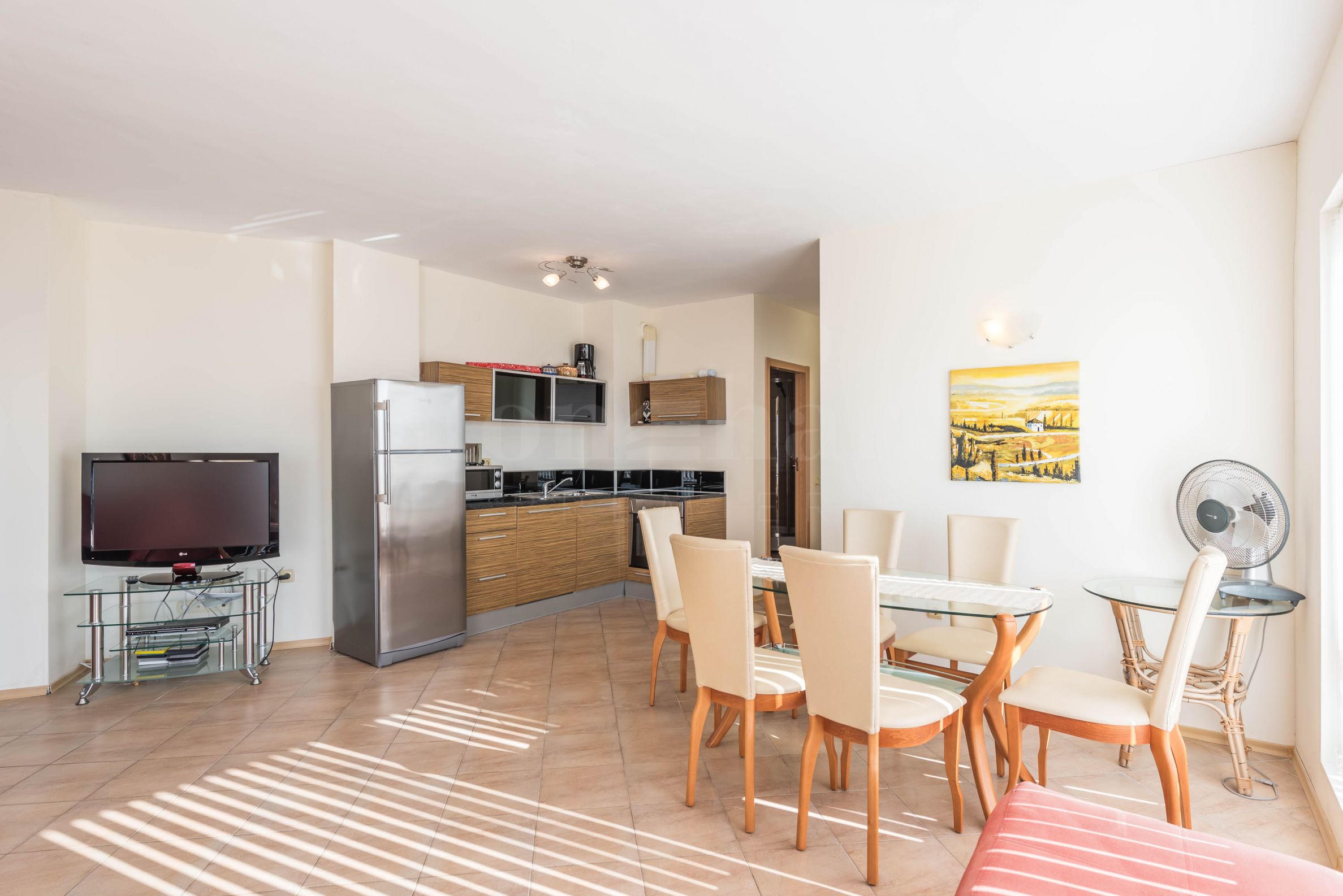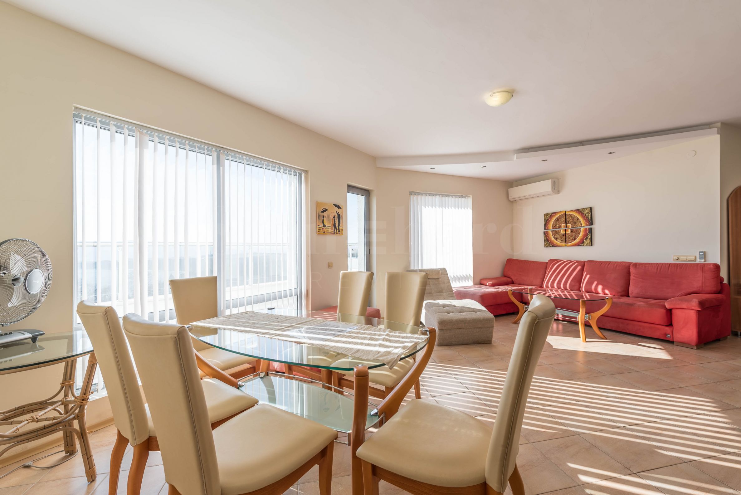 immense terrasse autour de tout l'appartement avec une vue unique sur la mer et Obzor.L'appartement est entièrement meublé et équipé d'appareils électroménagers et de meubles haut de gamme. Le chauffage est assuré par des climatiseurs.
