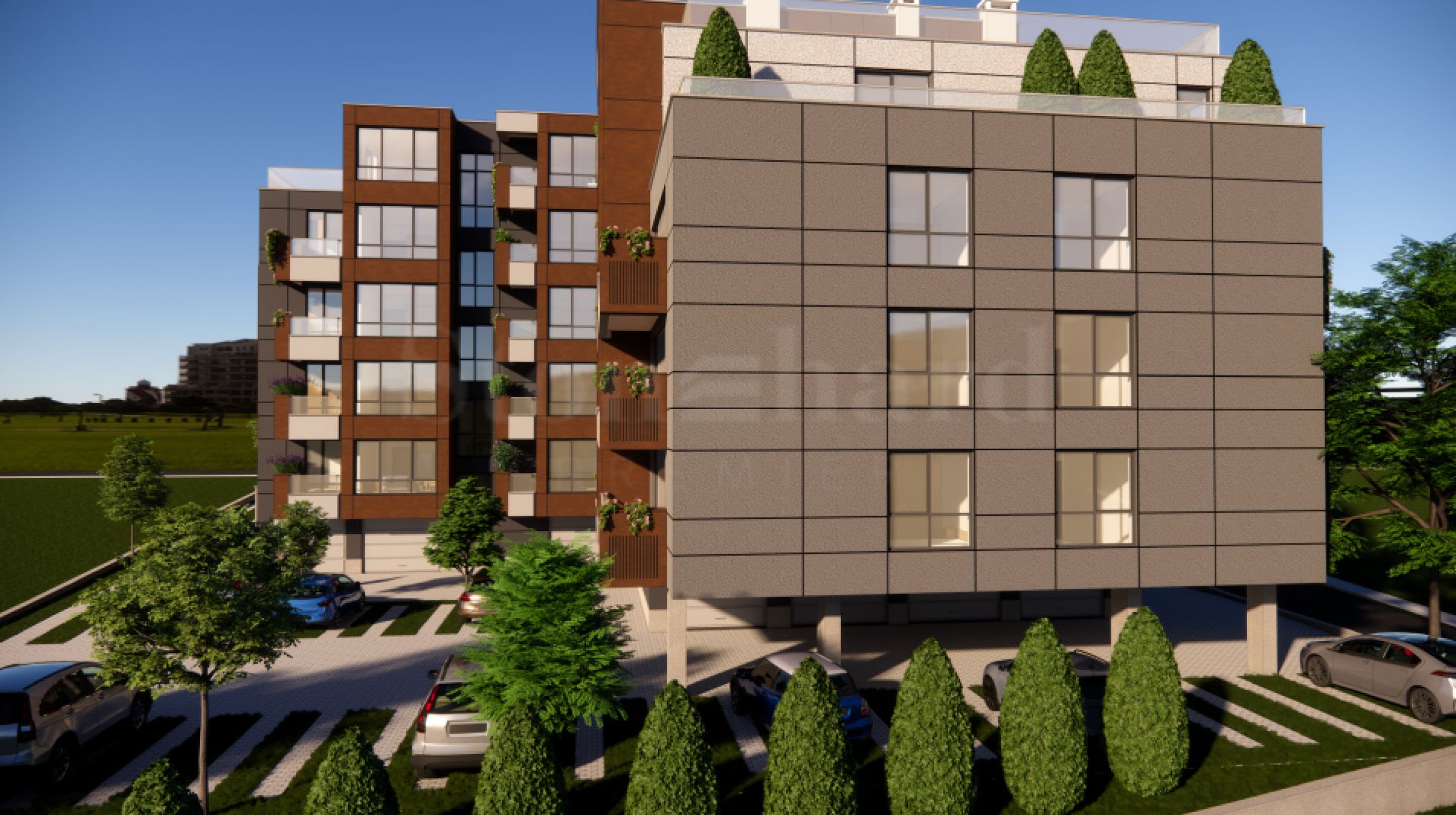 Le complexe est situé dans un endroit calme et paisible avec de l'air pur, dans le quartier vert de la capitale, à proximité d'une école et d'une maternelle, des hypermarchés Fantastico et Lidl.