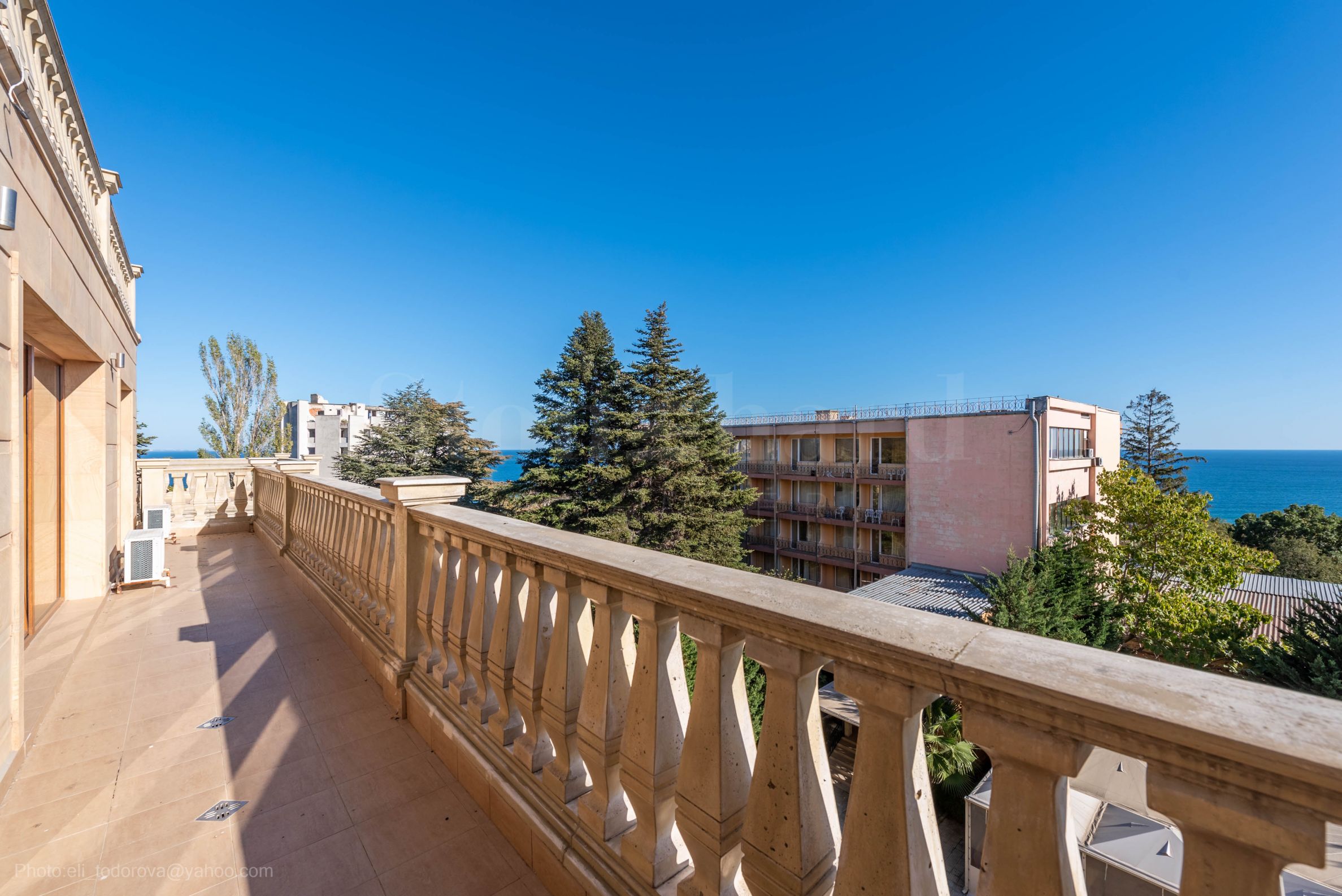 excellente terrasse avec vue panoramique sur la mer.L'appartement est confortablement meublé et équipé de tout le nécessaire, y compris des meubles et des appareils électroménagers, avec trois climatiseurs.
