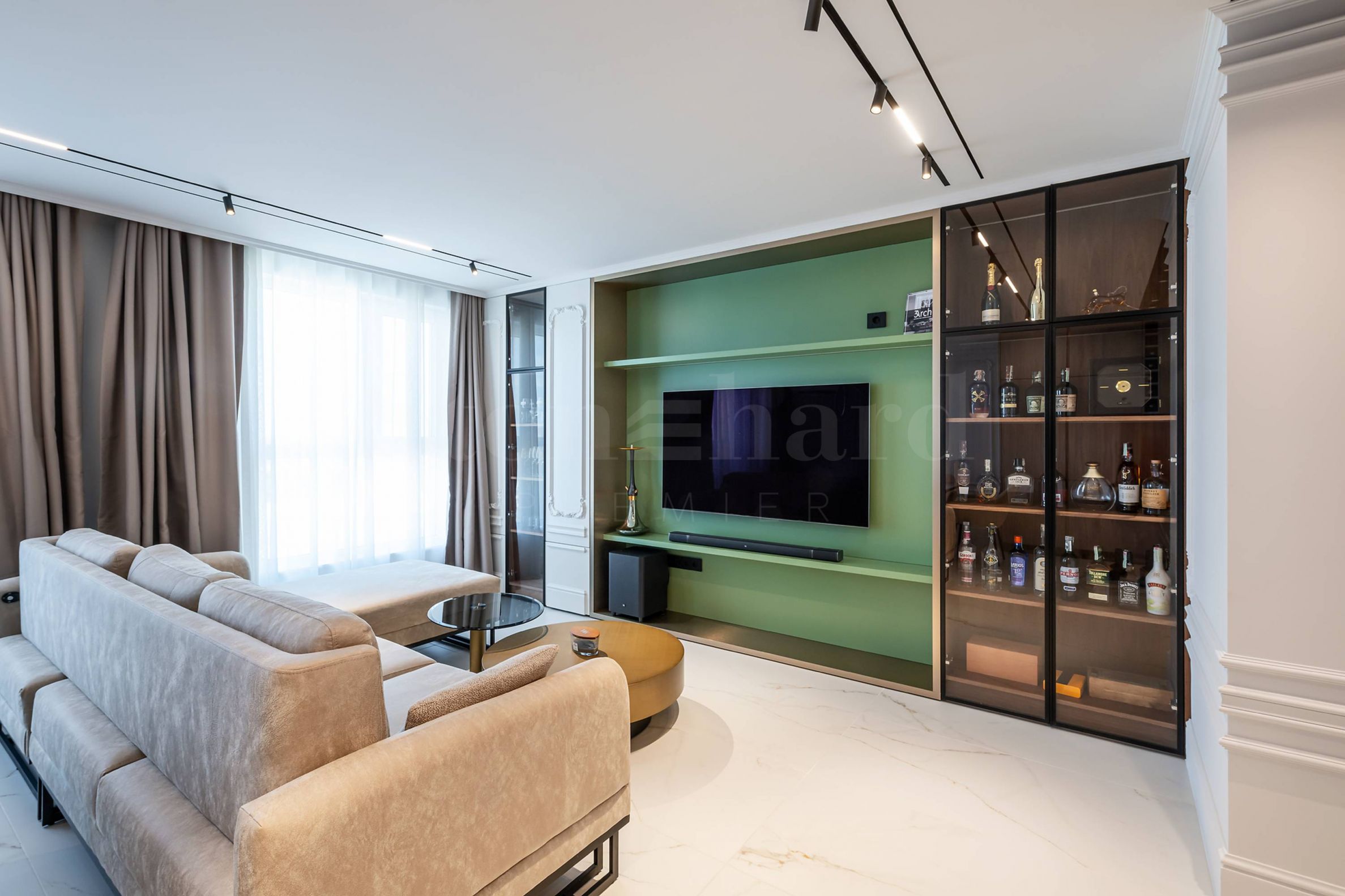trois terrasses.L'appartement est entièrement meublé et équipé avec des meubles et des appareils électroménagers de haute qualité, conçu et réalisé avec une attention au moindre détail, combinant un style néoclassique avec des solutions design modernes.