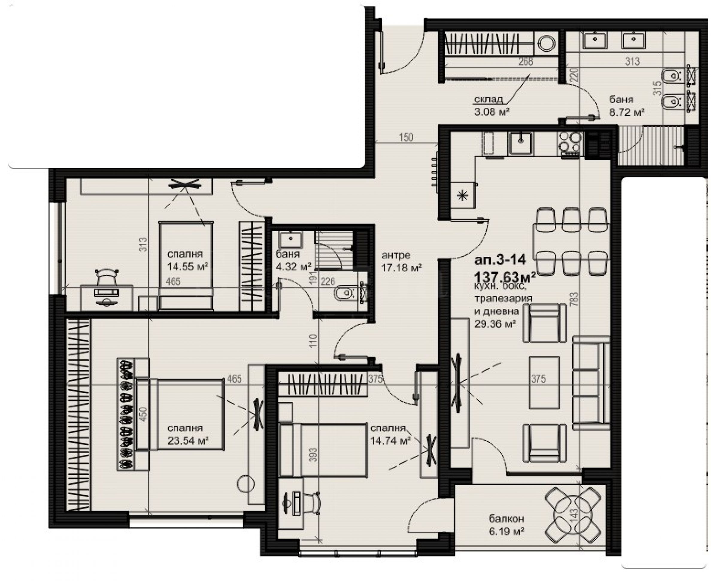Appartement multi-pièces dans une nouvelle résidence près du centre de Bourgas