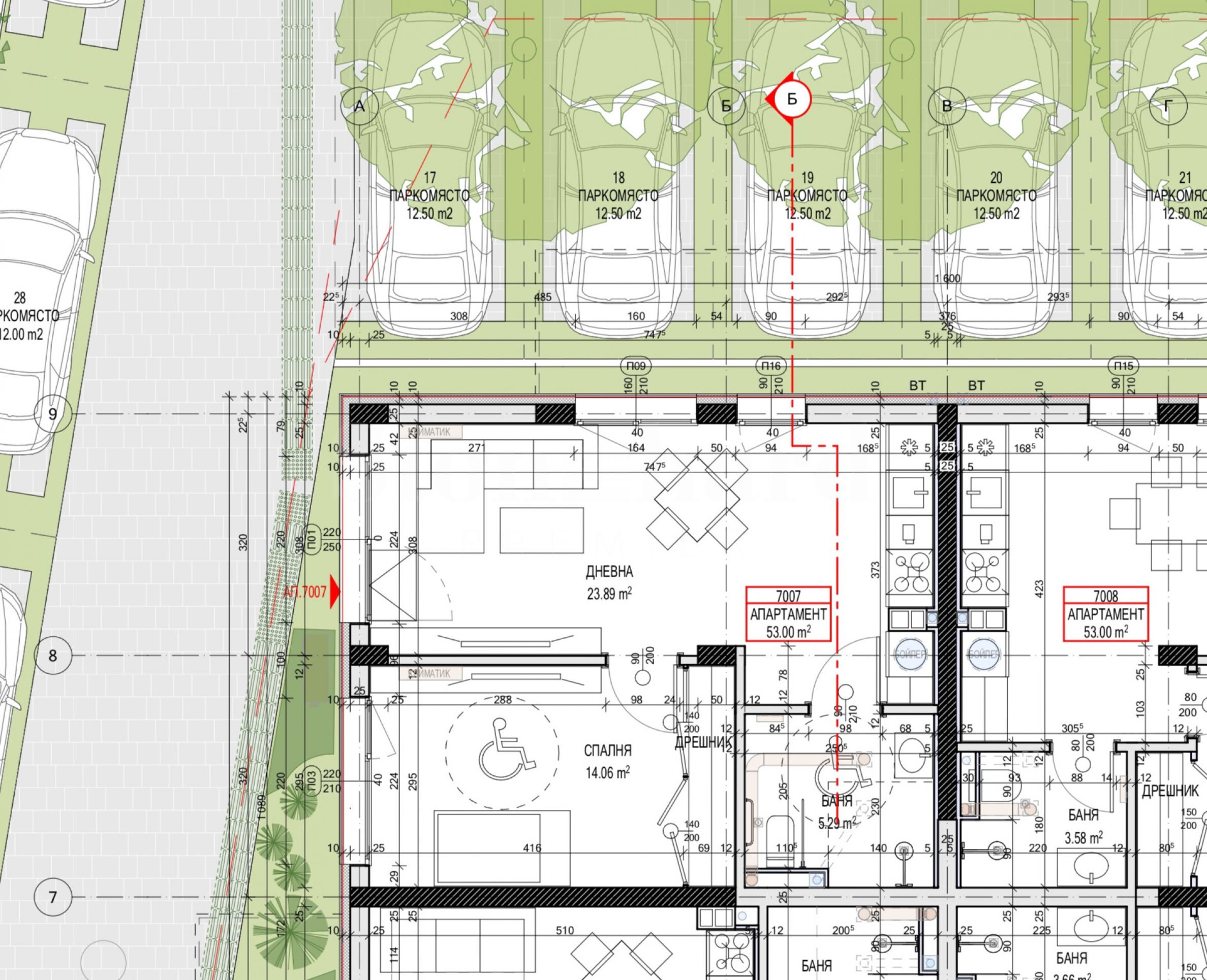 • espaces communs /murs, revêtements de sol, etc./ : sol - carrelage, murs - peinture, ascenseurs modernes, jardin de 2,5 déc. ;