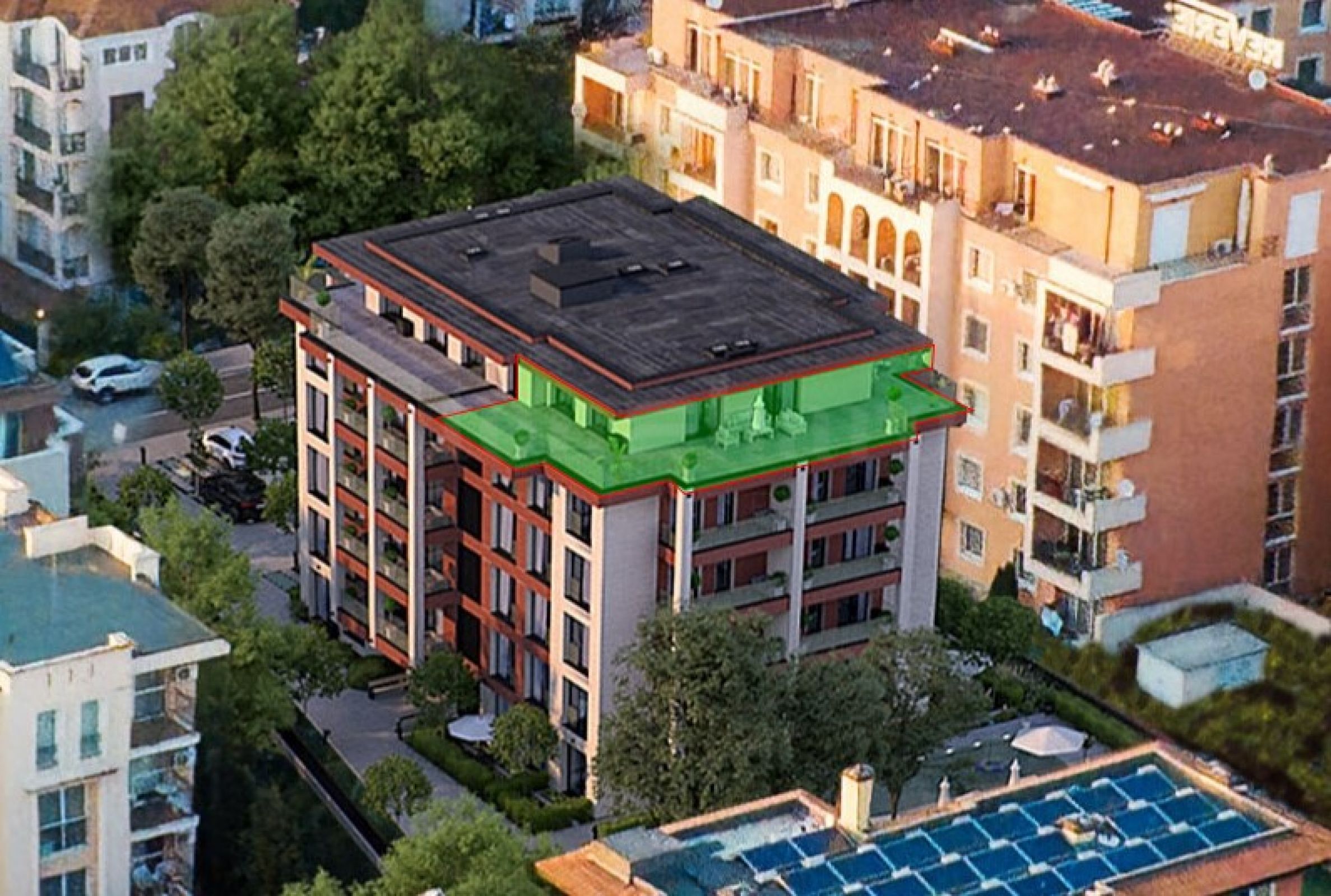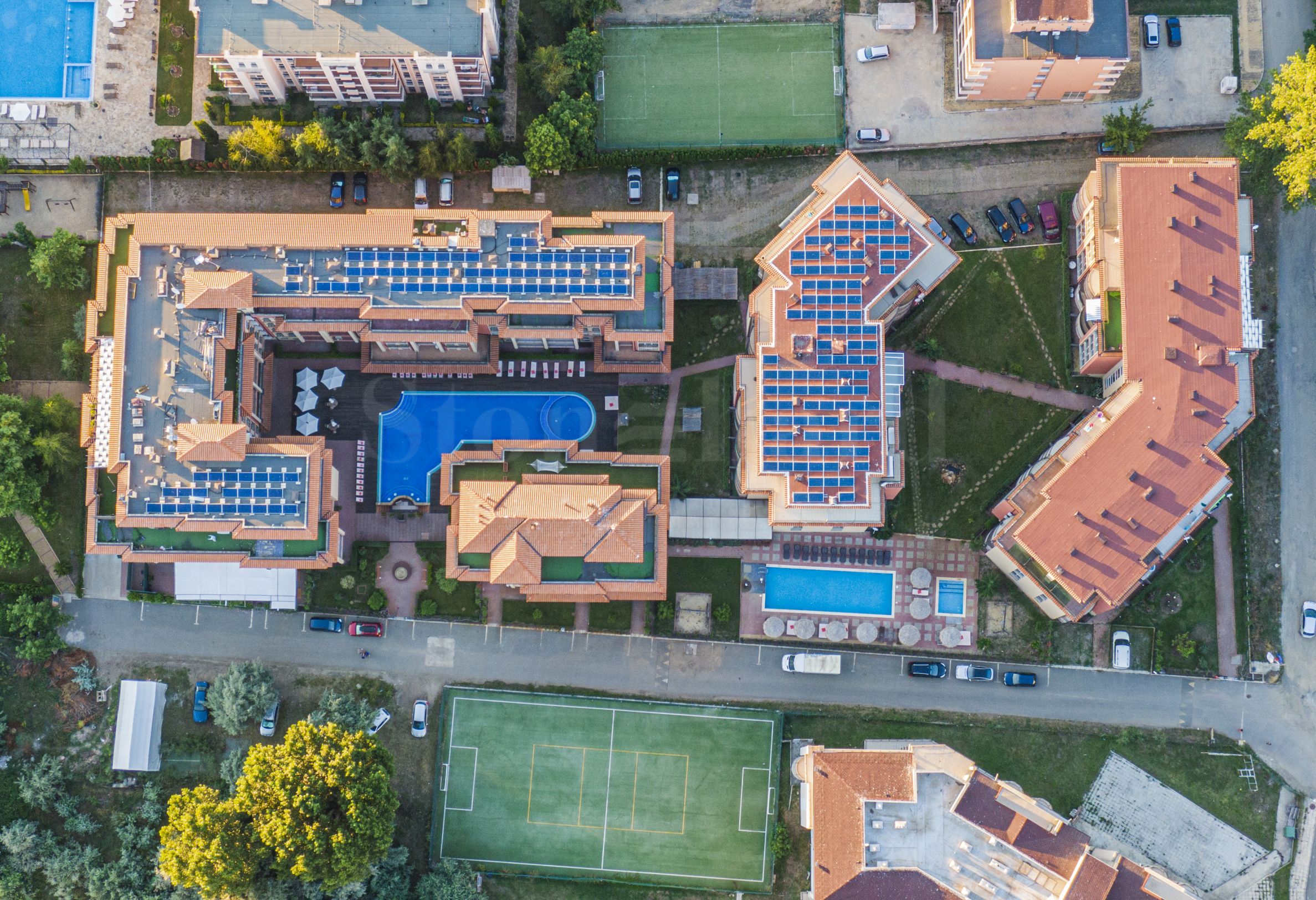 Le complexe se compose de sept bâtiments, dont le 16e, et d'un huitième bâtiment en construction. Des appartements ont été conçus et sont également proposés en version clé en main. L'ameublement complet est disponible moyennant un supplément.