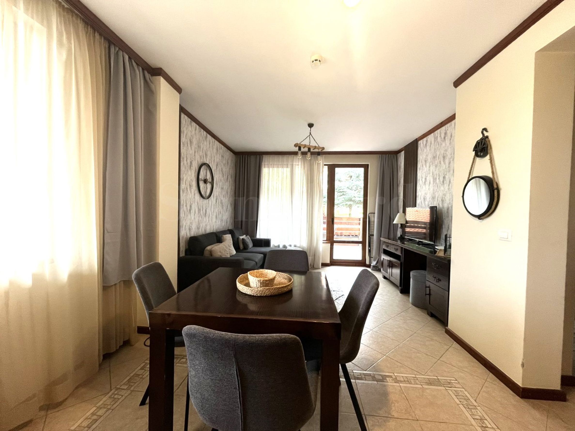 L'appartement est situé dans une maison derrière le bâtiment principal. Chaque maison dispose de : zone de massage, sauna, hammam, local à skis, grand barbecue avec cheminée, table de billard. Tous ces extras sont réservés uniquement aux propriétaires. Les propriétaires profiteront d'un air pur de montagne et de vues sur Pirin. L'intérieur charmant donne une sensation de confort domestique.