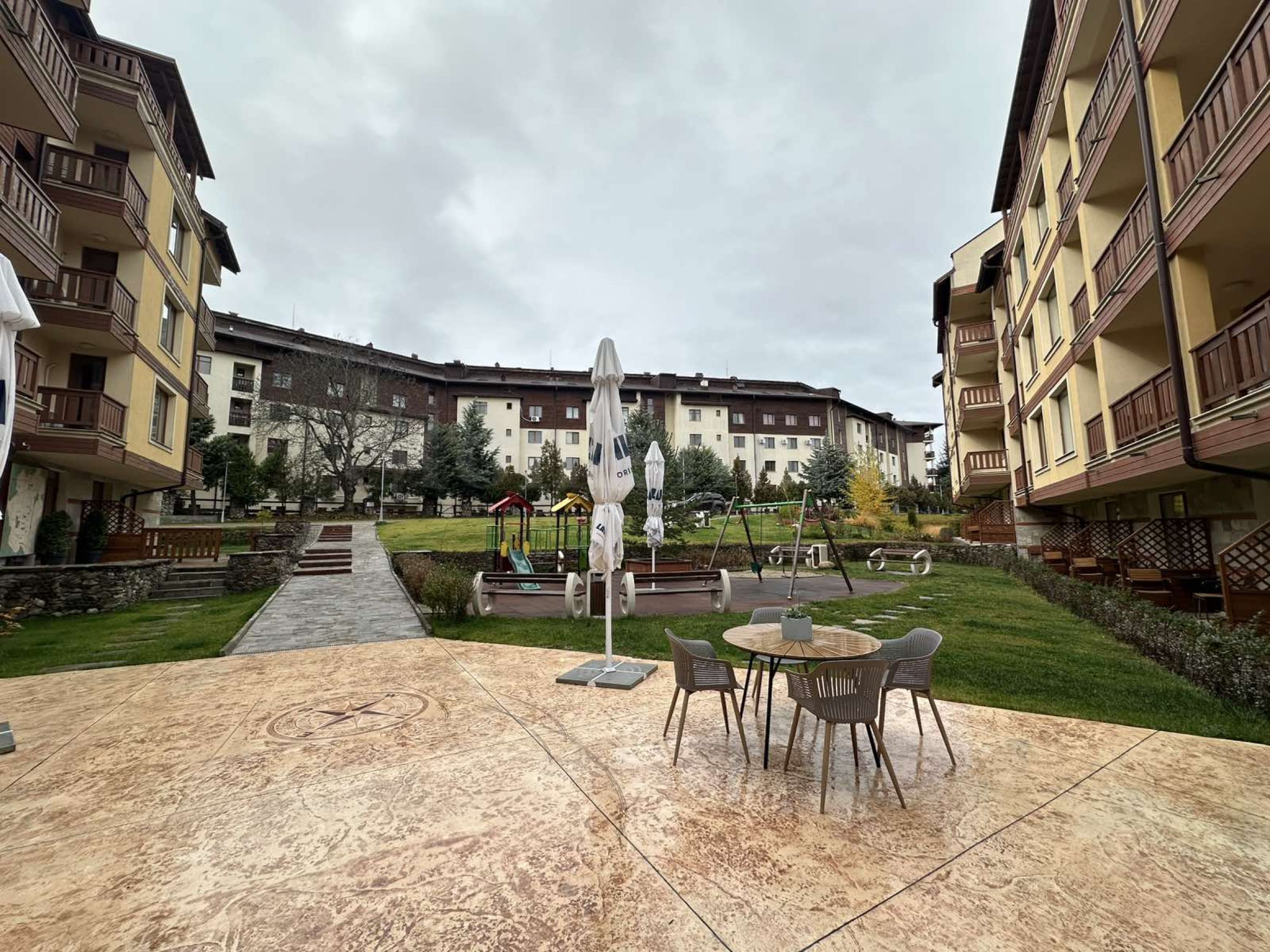 Le complexe est de type fermé et dispose d'une cour paysagée, d'une aire de jeux pour enfants et d'un parking extérieur.