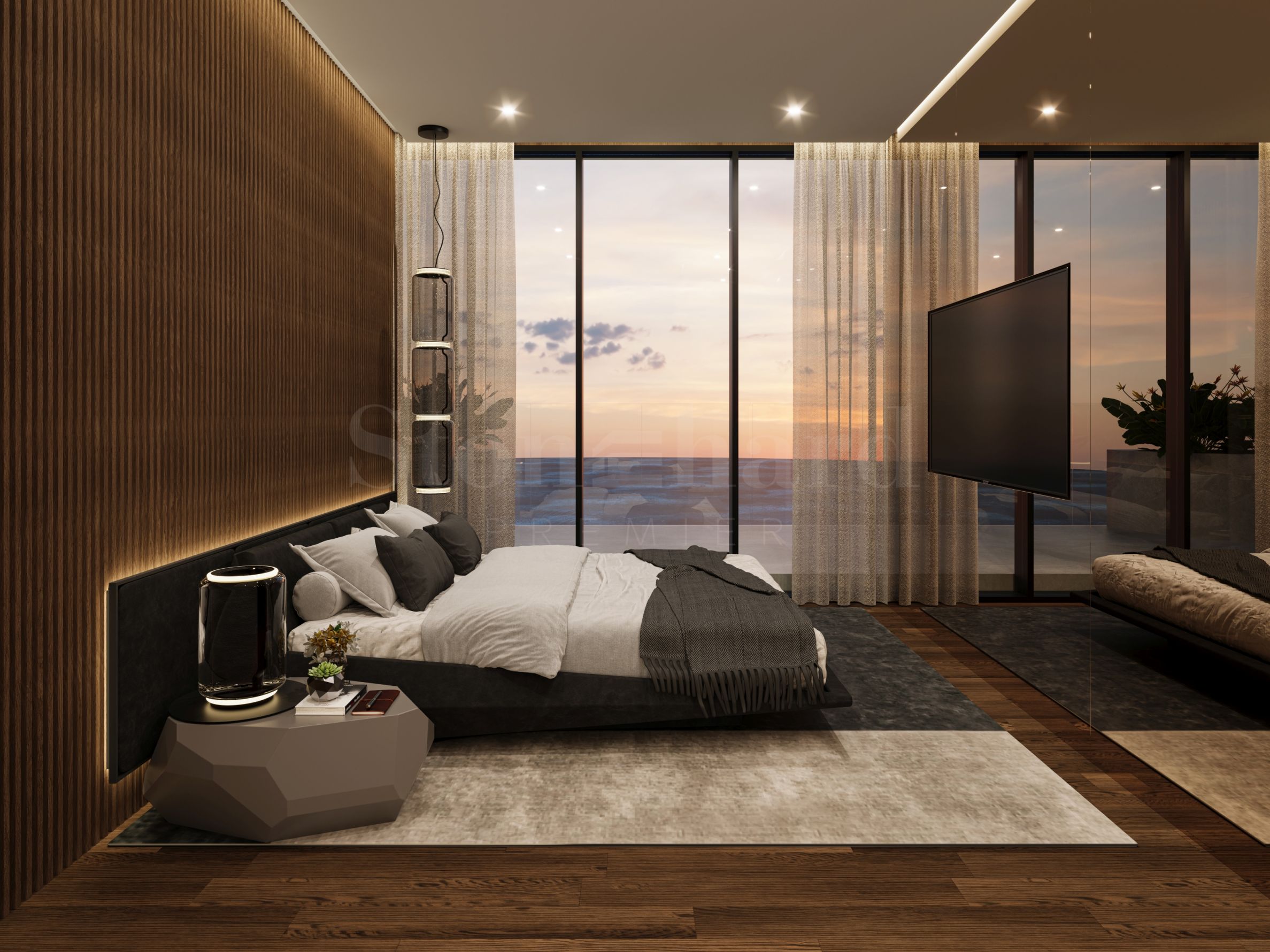 Le confort acoustique, l'éclairage doux et les transitions soignées entre les matériaux créent une atmosphère de concentration tranquille. Les intérieurs sont conçus comme une continuation naturelle du langage design de Tonino Lamborghini – audacieux, raffiné et avec une élégance discrète. Les lignes architecturales épurées forment des volumes généreux qui permettent à la lumière de circuler librement sur des surfaces en relief et des finitions soigneusement choisies. La palette sobre de tons neutres chauds, complétée par de subtils accents métalliques, crée une harmonie avec l'environnement côtier tout en conservant un style clairement reconnaissable.