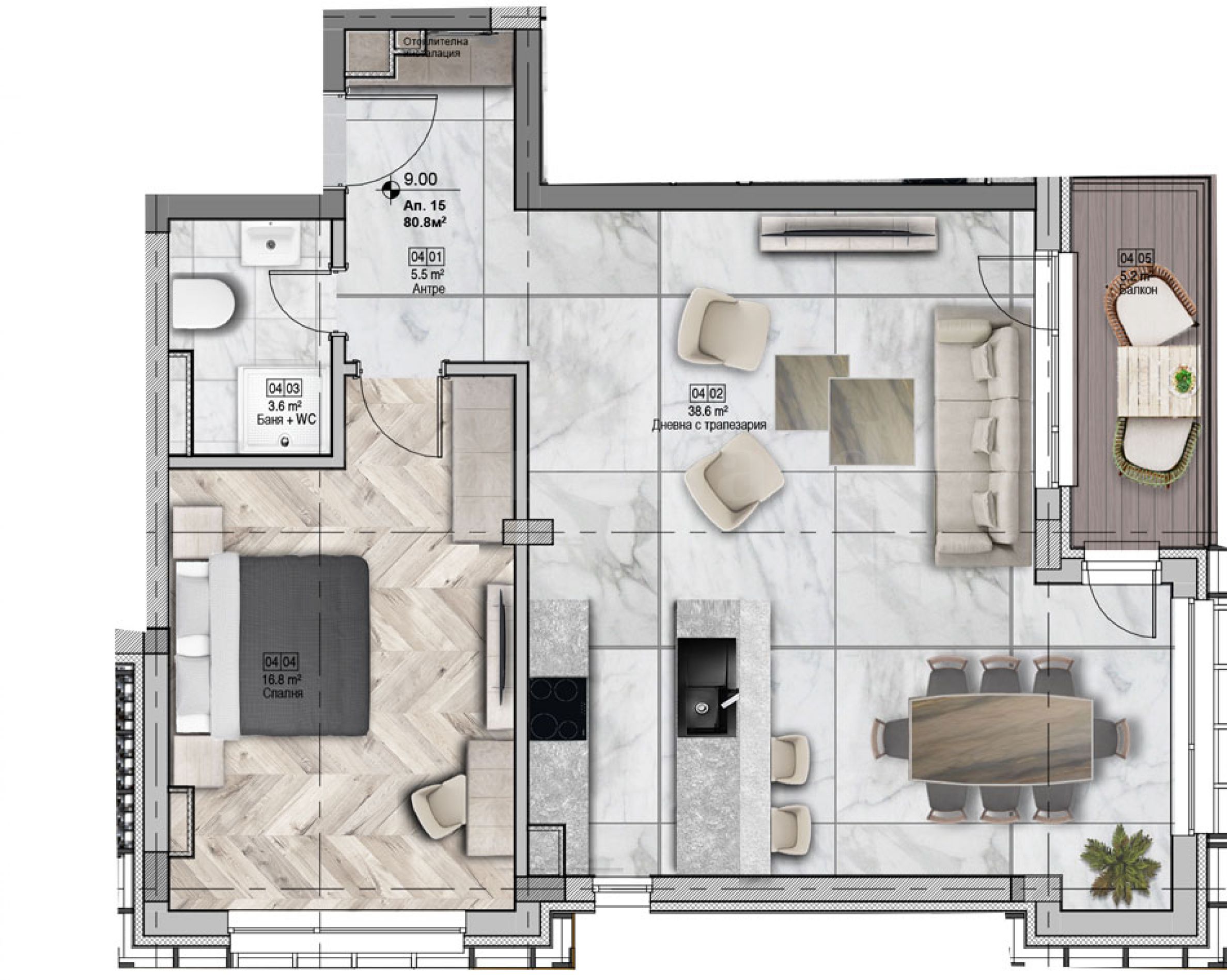 En supplément, une place de parking peut être achetée au prix de 35 000 euros (68454,05 BGN).