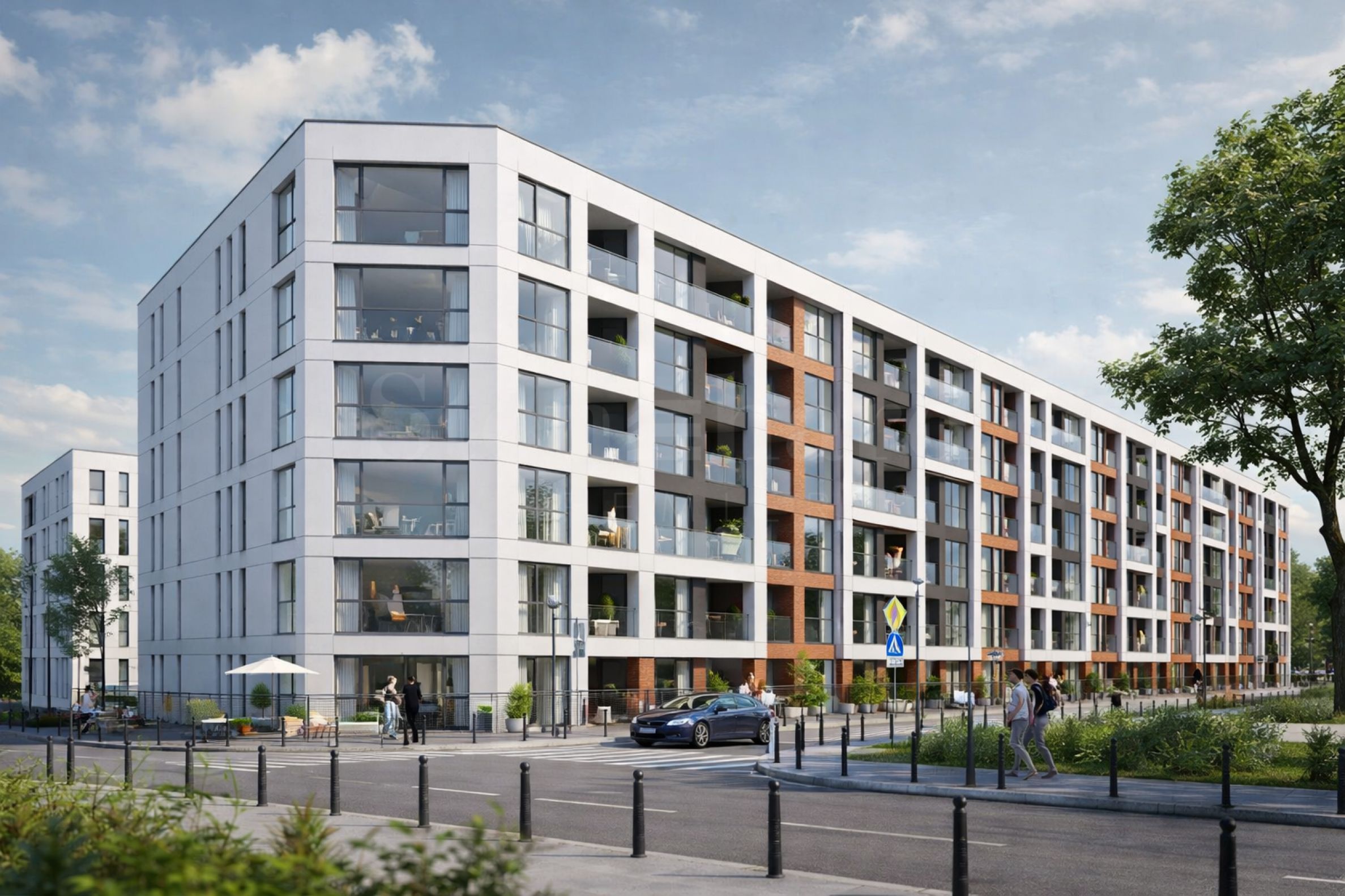 La façade du bâtiment est revêtue d'une façade suspendue en étalbond et d'un revêtement HPL. Ascenseur Orona 3G X15, menuiserie PVC à 5 chambres, triple vitrage, installation de climatisation intégrée et portes d'entrée blindées.