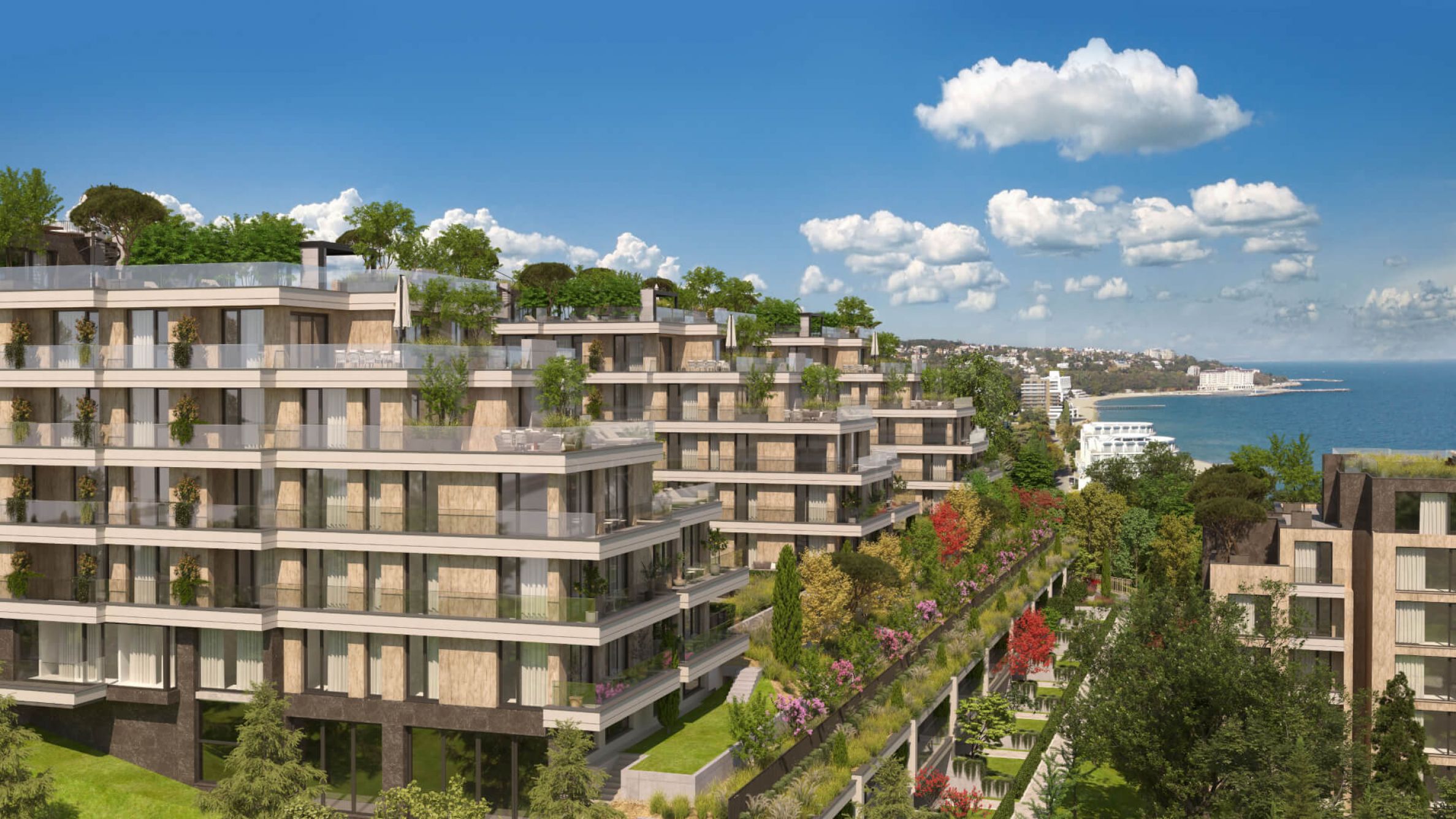 The distinctive advantage of the complex is that the panoramic apartments on the top floors will have extensive terraces with sea views.