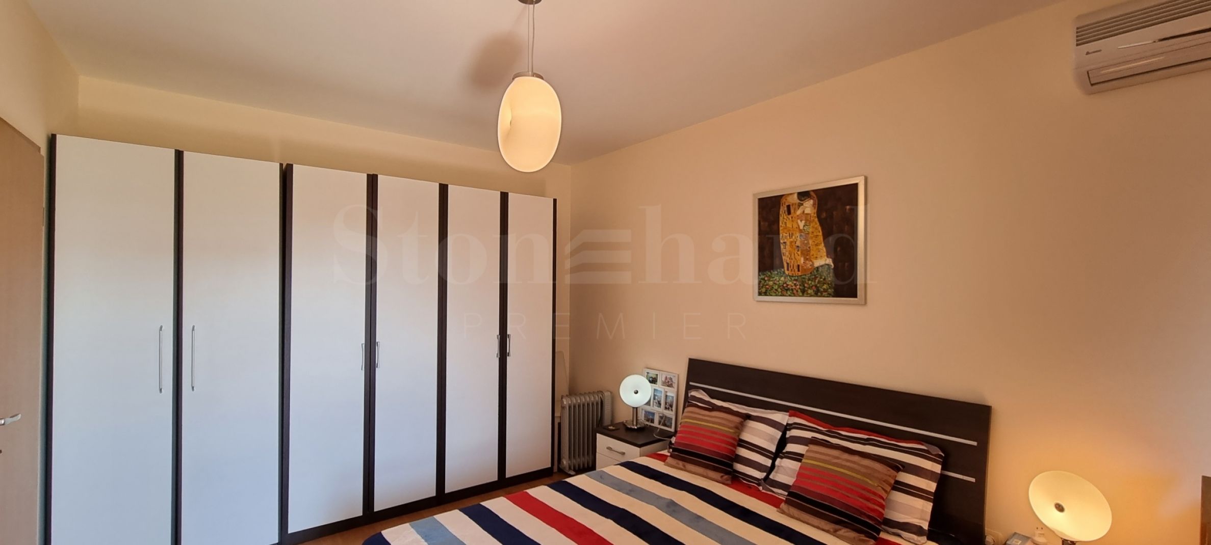 The property of 101.82 m2 is very bright, with a view of the green forest. For sale fully furnished. It consists of two bedrooms, a living room with a kitchen, two bathrooms, one of which has a bathtub.
