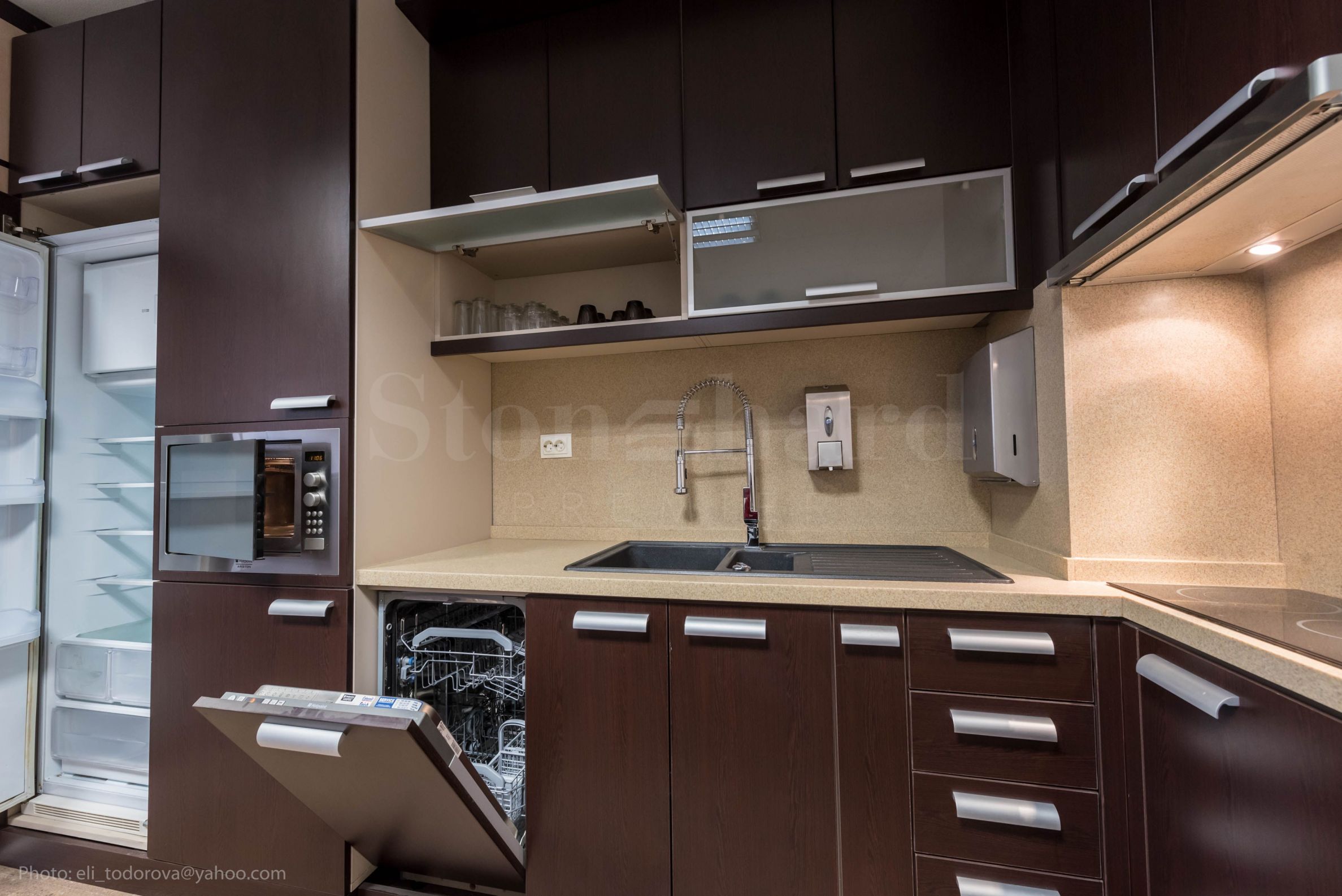 built-in kitchen furniture - microwave oven, refrigerator, dishwasher, hotplates, hood. Amenities in the Business Center: