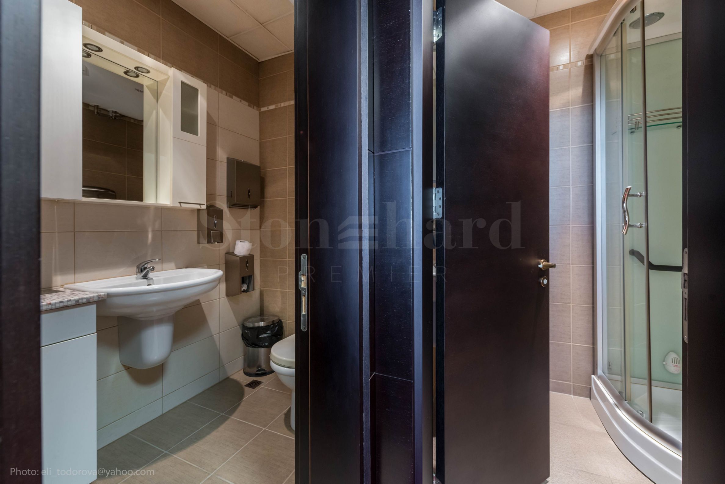 The first area is a meeting room, a representative office, a bathroom with a shower cabin with a massager, a toilet - 63 m2.