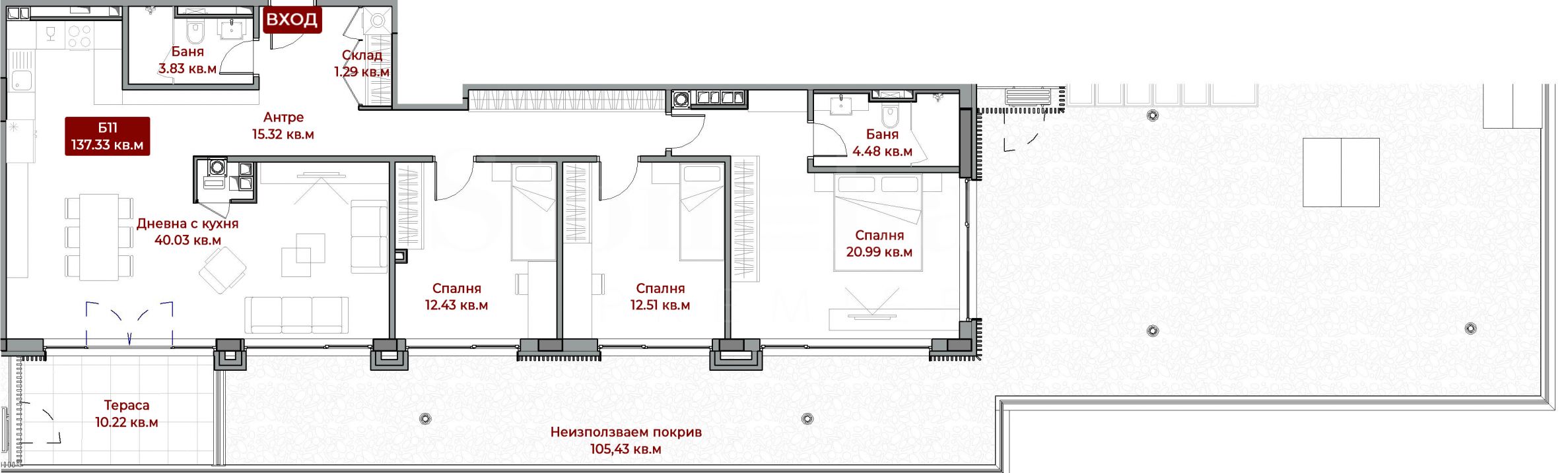 loggia. The apartment is offered in a state of completion according to Bulgarian Construction Standards.