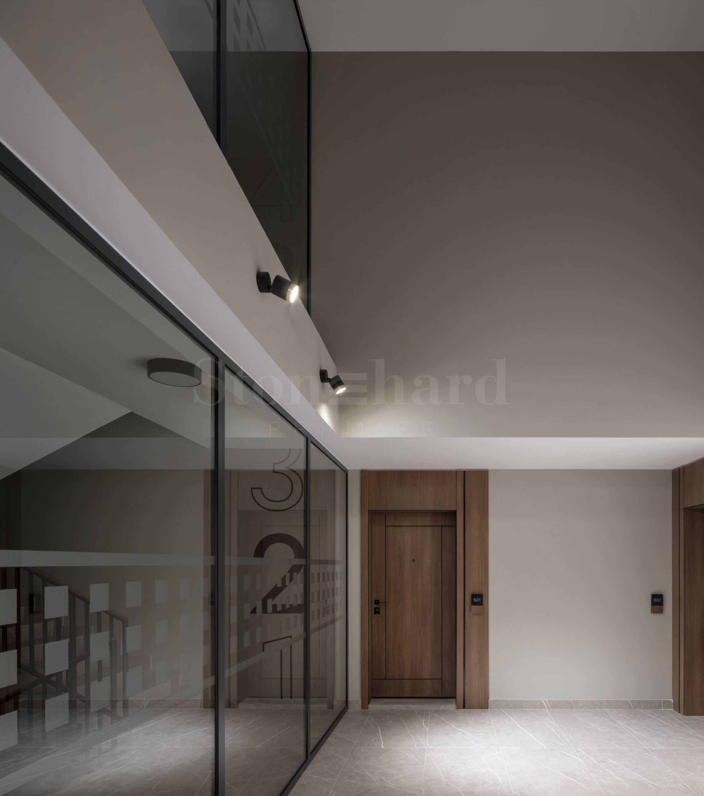 luxurious lobby - suspended ceilings, lighting and accents in architectural and interior details;