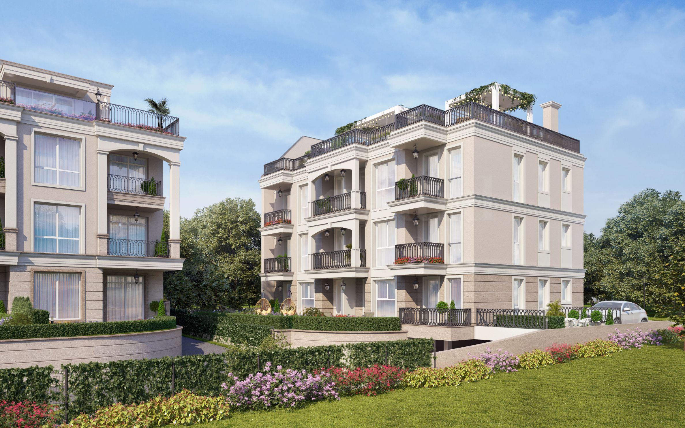 The building is distributed over three residential floors with an underground garage, an elevator, with private courtyards for the apartments on the first floor and spacious roof terraces on the 4th level, especially for the apartments on the third floor. The facade is selected in the style of the already built, neighboring building of the investor. It is distinguished by a stylish architectural design in neoclassical style, with beautiful arches and elements characteristic of the Mediterranean regions from the period of classical antiquity.